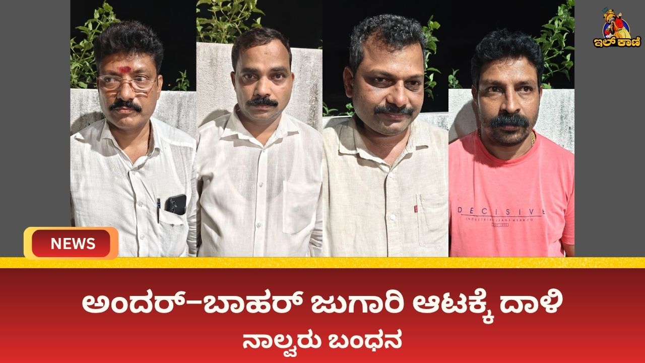 ಅಂದರ್–ಬಾಹರ್ ಜುಗಾರಿ ಆಟಕ್ಕೆ ದಾಳಿ: ನಾಲ್ವರು ಬಂಧನ