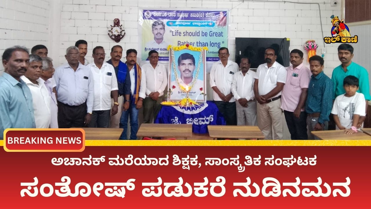 ಕೋಟ : ಇತ್ತೀಚಿಗೆ ಅಪಘಾತದಲ್ಲಿ ಮೃತಪಟ್ಟ ಶಿಕ್ಷಕ, ಸಾಂಸ್ಕ್ರತಿಕ ಸಂಘಟಕ, ಕೋಟ ದಸಂಸ ಕಾರ್ಯಕರ್ತ ಸಂತೋಷ್ ಪಡುಕರೆ ಯವರಿಗೆ ಇಂದು ಕೋಟ ಹೋಬಳಿ ಶಾಖೆಯ ವತಿಯಿಂದ ನುಡಿನಮನ ಸಲ್ಲಿಸಲಾಯಿತು.