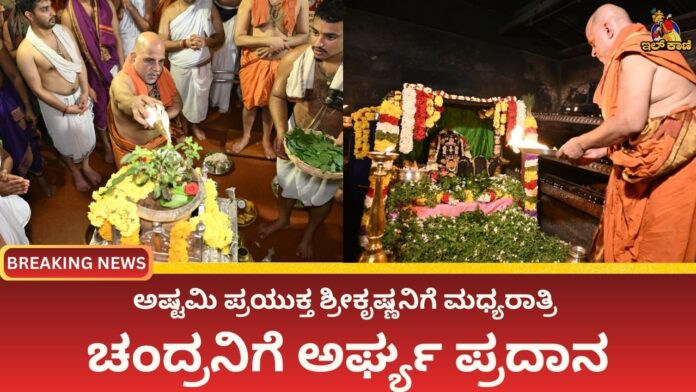 ಅಷ್ಟಮಿ ಪ್ರಯುಕ್ತ ಶ್ರೀಕೃಷ್ಣನಿಗೆ ಮಧ್ಯರಾತ್ರಿ ಚಂದ್ರನಿಗೆ ಅರ್ಘ್ಯ ಪ್ರದಾನ