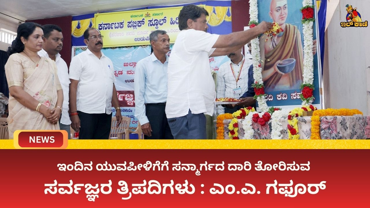 ಉಡುಪಿ: ಜನಸಾಮಾನ್ಯರಿಗೆ ಸುಲಭವಾಗಿ ಅರ್ಥವಾಗುವ ಸರಳ ಭಾಷೆ ಹಾಗೂ ಪದಗಳಲ್ಲಿ ತ್ರಿಪದಿಗಳನ್ನು ರಚಿಸುವ ಮೂಲಕ ಸಮಾಜದ ಅಂಧಕಾರವನ್ನು ದೂರಮಾಡಲು ಶ್ರಮಿಸಿದ ಕವಿ ಸರ್ವಜ್ಞರ ತ್ರಿಪದಿಗಳು ಇಂದಿನ ಯುವಪೀಳಿಗೆ ಸನ್ಮಾರ್ಗದ ದಾರಿಯಲ್ಲಿ ಸಾಗಲು ಸಹಕಾರಿಯಾಗಿವೆ ಎಂದು ಎಂ.ಎ. ಗಫೂರ್, ಕರಾವಳಿ ಅಭಿವೃದ್ಧಿ ಮಂಡಳಿಯ ಅಧ್ಯಕ್ಷರು ಹೇಳಿದರು.