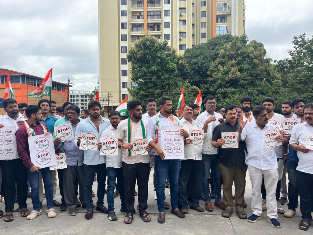 ಉಡುಪಿ : ಪ್ರಜಾಪ್ರಭುತ್ವದ ವ್ಯವಸ್ಥೆಯ ಕಗ್ಗೊಲೆ ಮಾಡುತ್ತಿರುವ ಕೇಂದ್ರ ಬಿಜೆಪಿ ಸರಕಾರದ ನಕಲಿ ವೋಟರ್ ಪಟ್ಟಿಯನ್ನು ಬಹಿರಂಗಗೊಳಿಸಿದ ರಾಹುಲ್ ಗಾಂಧಿಯವರ ನಿರ್ದೇಶನದಂತೆ ಉಡುಪಿ ಜಿಲ್ಲಾ ಯುವಕಾಂಗ್ರೆಸ್ ಸಮಿತಿ ಯು ಯುವಕಾಂಗ್ರೆಸ್ ನ ರಾಜ್ಯಾಧ್ಯಕ್ಷರಾದ ಮಂಜುನಾಥ ಹೆಚ್ ಎಸ್ ಮತ್ತು ಉಡುಪಿ ಯುವಕಾಂಗ್ರೆಸ್ ಉಸ್ತುವಾರಿಗಳಾದ ಮಂಜುನಾಥ್ ಚೆಟ್ಟಿ ಹಾಗೂ ಶ್ರೀಮತಿ ಸೋನಿಯಾ ಎಮ್, ಇಮ್ರಾನ್ ರವರ ಆದೇಶದ ಮೇರೆಗೆ ಸ್ಟಾಪ್ ವೋಟ್ ಚೋರಿ ಸ್ಟಿಕ್ಕರ್ ಅಭಿಯಾನ ಉಡುಪಿಯಾದ್ಯಂತ ನಡೆಯಿತು.