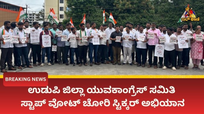 ಉಡುಪಿ : ಪ್ರಜಾಪ್ರಭುತ್ವದ ವ್ಯವಸ್ಥೆಯ ಕಗ್ಗೊಲೆ ಮಾಡುತ್ತಿರುವ ಕೇಂದ್ರ ಬಿಜೆಪಿ ಸರಕಾರದ ನಕಲಿ ವೋಟರ್ ಪಟ್ಟಿಯನ್ನು ಬಹಿರಂಗಗೊಳಿಸಿದ ರಾಹುಲ್ ಗಾಂಧಿಯವರ ನಿರ್ದೇಶನದಂತೆ ಉಡುಪಿ ಜಿಲ್ಲಾ ಯುವಕಾಂಗ್ರೆಸ್ ಸಮಿತಿ ಯು ಯುವಕಾಂಗ್ರೆಸ್ ನ ರಾಜ್ಯಾಧ್ಯಕ್ಷರಾದ ಮಂಜುನಾಥ ಹೆಚ್ ಎಸ್ ಮತ್ತು ಉಡುಪಿ ಯುವಕಾಂಗ್ರೆಸ್ ಉಸ್ತುವಾರಿಗಳಾದ ಮಂಜುನಾಥ್ ಚೆಟ್ಟಿ ಹಾಗೂ ಶ್ರೀಮತಿ ಸೋನಿಯಾ ಎಮ್, ಇಮ್ರಾನ್ ರವರ ಆದೇಶದ ಮೇರೆಗೆ ಸ್ಟಾಪ್ ವೋಟ್ ಚೋರಿ ಸ್ಟಿಕ್ಕರ್ ಅಭಿಯಾನ ಉಡುಪಿಯಾದ್ಯಂತ ನಡೆಯಿತು.
