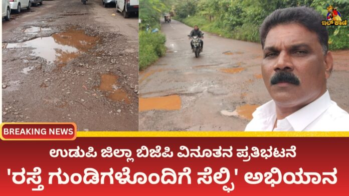 ಉಡುಪಿ : ಜನರ ಜೀವನಾಡಿಯಂತಿರುವ ರಸ್ತೆಗಳ ಗುಂಡಿಗಳನ್ನು ತಕ್ಷಣ ಮುಚ್ಚಿ ದುರಸ್ತಿಗೊಳಿಸುವಂತೆ ರಾಜ್ಯ ಸರಕಾರವನ್ನು ಅಗ್ರಹಿಸಿ ಉಡುಪಿ ಜಿಲ್ಲಾ ಬಿಜೆಪಿ ಹಮ್ಮಿಕೊಂಡಿರುವ ‘ರಸ್ತೆ ಗುಂಡಿಗಳ ಜೊತೆ ಸೆಲ್ಫಿ ಅಭಿಯಾನ’ಕ್ಕೆ ಬಿಜೆಪಿ ಉಡುಪಿ ಜಿಲ್ಲಾಧ್ಯಕ್ಷ ಕುತ್ಯಾರು ನವೀನ್ ಶೆಟ್ಟಿ ಅವರು ಸಾಮಾಜಿಕ ಜಾಲತಾಣದಲ್ಲಿ ‘ರಸ್ತೆ ಗುಂಡಿಗಳ ಜೊತೆ ಸೆಲ್ಫಿ’ ಫೋಟೋ ಹಂಚಿಕೊಳ್ಳುವ ಮೂಲಕ ಚಾಲನೆ ನೀಡಿದರು.