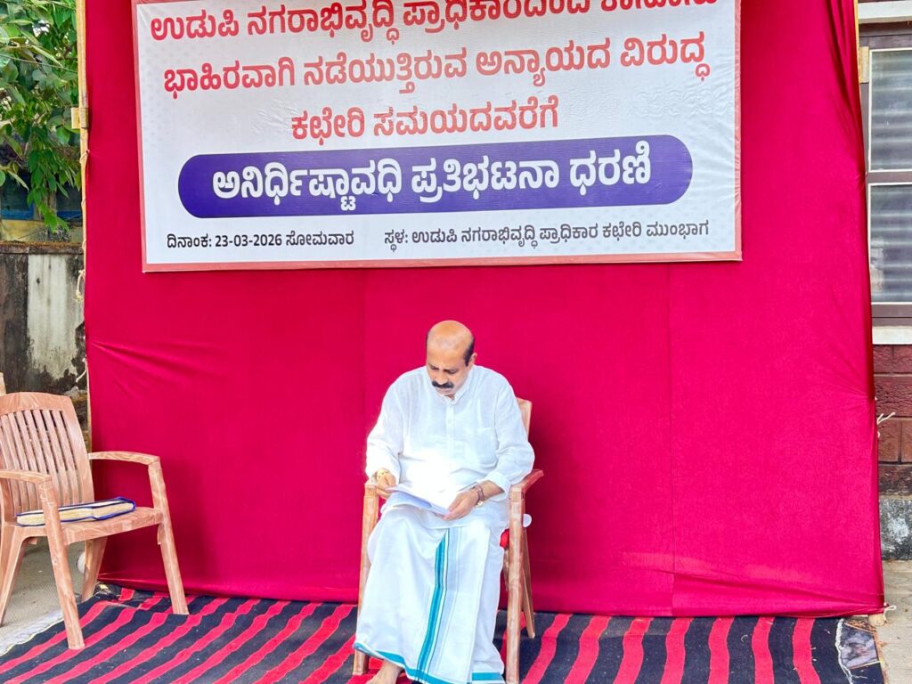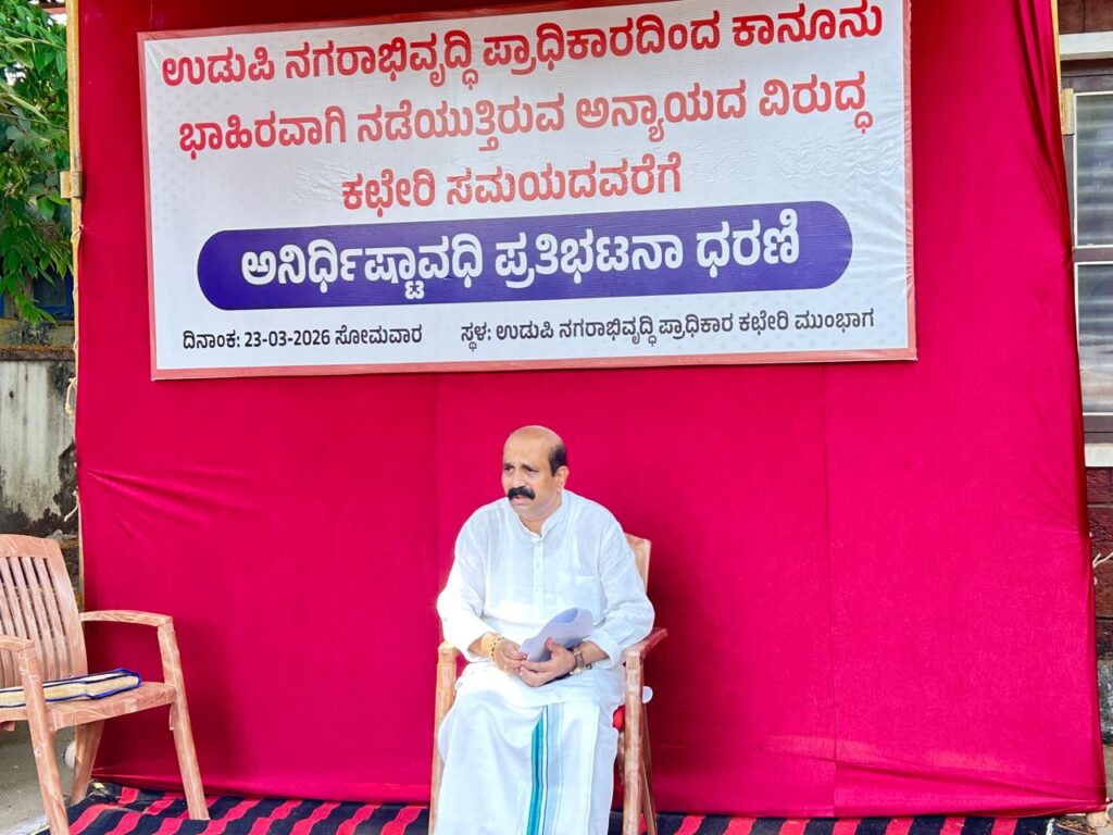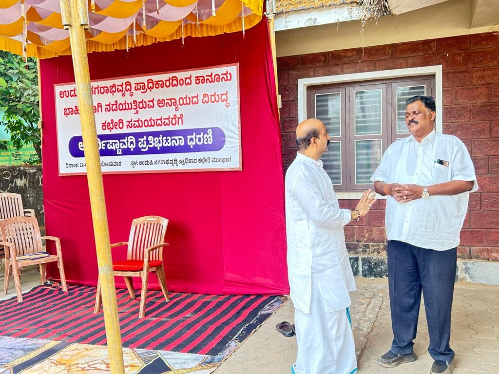 ಏಕ ವಿನ್ಯಾಸ ಅನುಮತಿ ವಿಳಂಬ: ನಗರಾಭಿವೃದ್ಧಿ ಪ್ರಾಧಿಕಾರದ ಎದುರು ರಘುಪತಿ ಭಟ್ ಧರಣಿ ಆರಂಭ