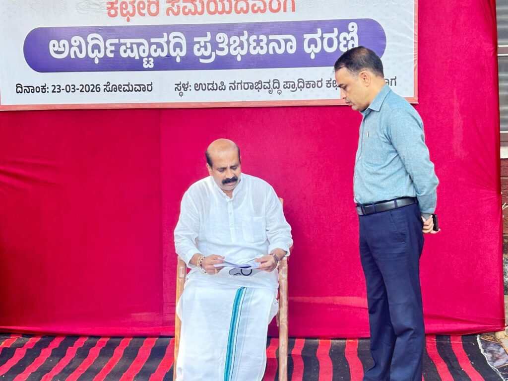 ಉಡುಪಿ: ಬಡ ನಿಡಿಯೂರು ಗ್ರಾಮದ ಕಡಲ ತೀರದಲ್ಲಿ ರೆಸಾರ್ಟ್ ನಿರ್ಮಾಣಕ್ಕೆ ಅಗತ್ಯವಾದ ಏಕ ವಿನ್ಯಾಸ ಅನುಮತಿ ಪತ್ರ ನೀಡದೆ ವಿಳಂಬ ಮಾಡಲಾಗುತ್ತಿದೆ ಎಂದು ಆರೋಪಿಸಿ ಉಡುಪಿಯ ಮಾಜಿ ಶಾಸಕ ರಘುಪತಿ ಭಟ್ ನಗರಾಭಿವೃದ್ಧಿ ಪ್ರಾಧಿಕಾರದ ಎದುರು ಇಂದಿನಿಂದ ಧರಣಿ ಆರಂಭಿಸಿದ್ದಾರೆ.