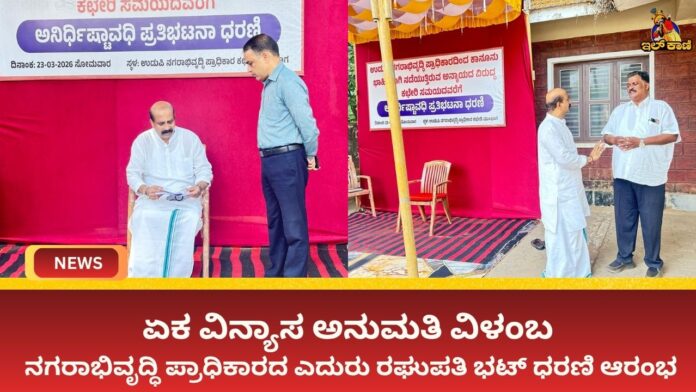 ಏಕ ವಿನ್ಯಾಸ ಅನುಮತಿ ವಿಳಂಬ: ನಗರಾಭಿವೃದ್ಧಿ ಪ್ರಾಧಿಕಾರದ ಎದುರು ರಘುಪತಿ ಭಟ್ ಧರಣಿ ಆರಂಭ