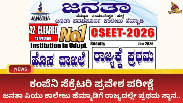 ಉಡುಪಿ : ಇನ್ಸ್ಟಿಟ್ಯೂಟ್ ಆಫ್ ಕಂಪನಿ ಸೆಕ್ರೆಟರಿಸ್ ಆಫ್ ಇಂಡಿಯಾ ನಡೆಸಿದ ಸಿ.ಎಸ್.ಇ.ಇ.ಟಿ (ಕಂಪನಿ ಸೆಕ್ರೆಟರಿ ಎಕ್ಸಿಕ್ಯೂಟಿವ್ ಎಂಟ್ರನ್ಸ್ ಟೆಸ್ಟ್ – ಜನವರಿ 2026) ಪರೀಕ್ಷೆಯಲ್ಲಿ ಜನತಾ ಪದವಿಪೂರ್ವ ಕಾಲೇಜು, ಹೆಮ್ಮಾಡಿಯ ವಾಣಿಜ್ಯ ವಿಭಾಗ ರಾಜ್ಯಮಟ್ಟದಲ್ಲಿ ಗಮನಾರ್ಹ ಸಾಧನೆ ಮಾಡಿದೆ. ಪರೀಕ್ಷೆಗೆ ಹಾಜರಾದ 43 ವಿದ್ಯಾರ್ಥಿಗಳ ಪೈಕಿ 42 ವಿದ್ಯಾರ್ಥಿಗಳು ಅತ್ಯಧಿಕ ಅಂಕಗಳೊಂದಿಗೆ ಉತ್ತೀರ್ಣರಾಗಿ ಸಿ.ಎಸ್. ಎಕ್ಸಿಕ್ಯೂಟಿವ್ ಪ್ರೋಗ್ರಾಂಗೆ ಅರ್ಹತೆ ಪಡೆದಿದ್ದಾರೆ. ಈ ಮೂಲಕ ಕಾಲೇಜು ರಾಜ್ಯದಲ್ಲೇ ಪ್ರಥಮ ಸ್ಥಾನ ಗಳಿಸಿದೆ.
