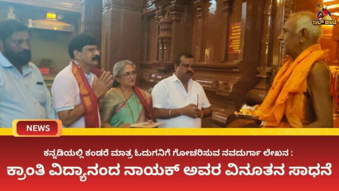 ಉಡುಪಿ : ಕಾಪು ಶ್ರೀ ಹೊಸ ಮಾರಿಗುಡಿ ದೇವಸ್ಥಾನದಲ್ಲಿ ನಡೆಯುತ್ತಿರುವ ಲೋಕಕಲ್ಯಾಣಾರ್ಥ ನವದುರ್ಗಾ ಲೇಖನ ಯಜ್ಞಕ್ಕೆ ಈ ಬಾರಿ ವಿಶಿಷ್ಟ ಆಕರ್ಷಣೆ ದೊರೆತಿದೆ. ಕ್ರಾಂತಿ ವಿದ್ಯಾನಂದ ನಾಯಕ್ ಅವರು ಬರೆದಿರುವ ನವದುರ್ಗಾ ಲೇಖನವನ್ನು ನೇರವಾಗಿ ಓದಲು ಸಾಧ್ಯವಿಲ್ಲ; ಬದಲಿಗೆ ಕನ್ನಡಿಯ ಮೂಲಕ ನೋಡಿದಾಗ ಮಾತ್ರ ಅಕ್ಷರಗಳು ಸರಿಯಾಗಿ ಗೋಚರಿಸುವ ವಿಶೇಷ ವಿಧಾನವನ್ನು ಅವರು ಬಳಸಿದ್ದಾರೆ. ಲೇಖನವನ್ನು ಕನ್ನಡ, ತುಳು, ಇಂಗ್ಲಿಷ್ ಮತ್ತು ಹಿಂದಿ ಸೇರಿ ನಾಲ್ಕು ಭಾಷೆಗಳಲ್ಲಿ ಬರೆಯಲು ಅವಕಾಶವಿದ್ದು, ಕ್ರಾಂತಿ ನಾಯಕ್ ಅವರು ಎಲ್ಲಾ ನಾಲ್ಕು ಭಾಷೆಯಲ್ಲೂ ಇದೇ ವಿನೂತನ ಶೈಲಿಯನ್ನು ಅನುಸರಿಸಿದ್ದಾರೆ. ಕನ್ನಡಿಯ ಪ್ರತಿಬಿಂಬದ ಮೂಲಕ ಓದಬಹುದಾದ ಈ ಲೇಖನವು ಭಕ್ತರ ಕುತೂಹಲಕ್ಕೆ ಕಾರಣವಾಗಿದೆ.