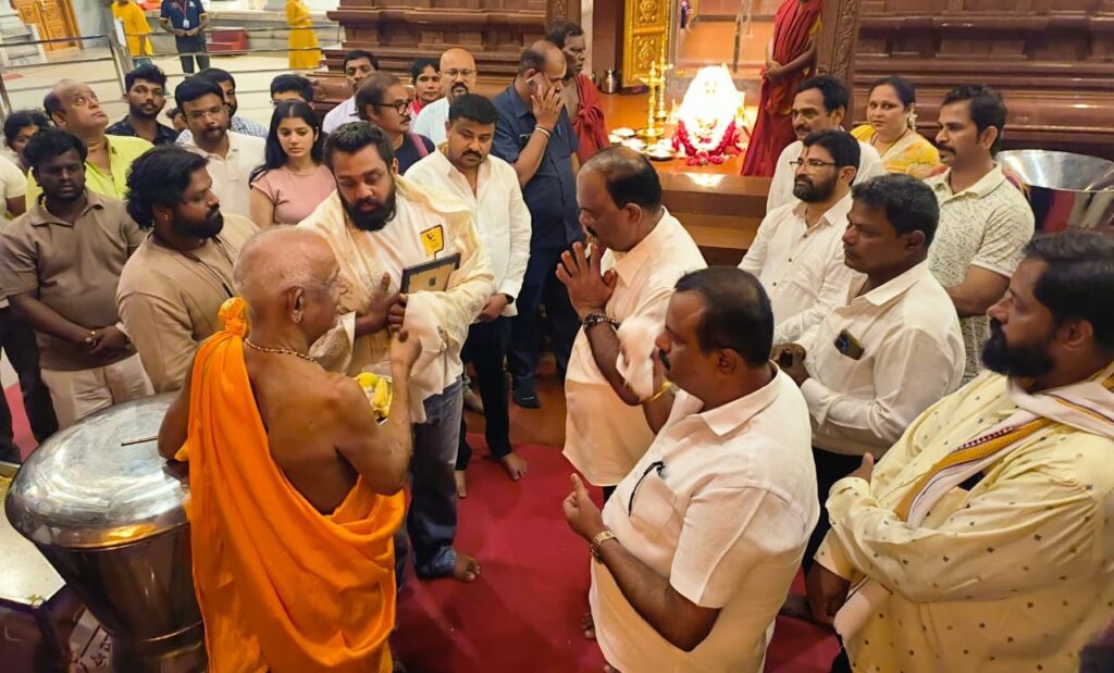 ಉಡುಪಿ : ಉಚ್ಚಂಗಿ ಸಹಿತ ಶ್ರೀ ಮಾರಿಯಮ್ಮನ ಕ್ಷೇತ್ರ ಕಾಪು ಶ್ರೀ ಹೊಸ ಮಾರಿಗುಡಿ ದೇವಸ್ಥಾನಕ್ಕೆ ಕನ್ನಡ ಚಿತ್ರರಂಗದ ಖ್ಯಾತ ಚಲನಚಿತ್ರ ನಟ ಧ್ರುವ ಸರ್ಜಾ ಜೊತೆಗೆ ಮುಳಬಾಗಿಲು ವಿಧಾನಸಭಾ ಕ್ಷೇತ್ರದ ಶಾಸಕ ಸಮೃದ್ಧಿ ವಿ ಮಂಜುನಾಥ್, ಖ್ಯಾತ ಕನ್ನಡ ಚಲನಚಿತ್ರ ನಿರ್ದೇಶಕ ಶ್ರೀನಿವಾಸ್ ರಾಜು, ನಟಿ ದೇವಿಕಾ ರಾಣಿ, ಡೆಕ್ಕನ್ ಸಮೂಹ ಸಂಸ್ಥೆ ಮಾಲಕ ಶಶಿಕಾಂತ್, ಟ್ರಾವೆಲ್ ಮಾರ್ಟ್ ಸಂಸ್ಥೆ ಮಾಲಕ ಮೋಹನ್ ಸುಂದರ್ ಆಗಮಿಸಿ ಉಚ್ಚಂಗಿ ಸಹಿತ ಶ್ರೀ ಮಾರಿಯಮ್ಮ ದೇವಿಯ ದರುಶನ ಪಡೆದರು.