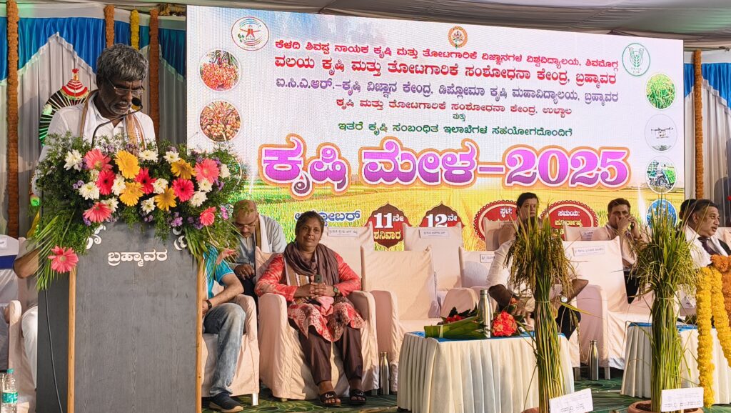 ಅವರು ಬ್ರಹ್ಮಾವರದ ವಲಯ ಕೃಷಿ ಮತ್ತು ತೋಟಗಾರಿಕಾ ಸಂಶೋಧನಾ ಕೇಂದ್ರದ ಆವರಣದಲ್ಲಿ ಕೆಳದಿ ಶಿವಪ್ಪ ನಾಯಕ ಕೃಷಿ ಮತ್ತು ತೋಟಗಾರಿಕೆ ವಿಶ್ವವಿದ್ಯಾನಿಲಯ ಶಿವಮೊಗ್ಗ, ವಲಯ ಕೃಷಿ ಮತ್ತು ತೋಟಗಾರಿಕೆ ಸಂಶೋಧನಾ ಕೇಂದ್ರ, ಕೃಷಿ ವಿಜ್ಞಾನ ಕೇಂದ್ರ ಮತ್ತು ಡಿಪ್ಲೊಮಾ ಕೃಷಿ ಮಹಾವಿದ್ಯಾಲಯ ಬ್ರಹ್ಮಾವರ, ಕೃಷಿ ಮತ್ತು ತೋಟಗಾರಿಕೆ ಸಂಶೋಧನಾ ಕೇಂದ್ರ ಉಳ್ಳಾಲ, ಕೃಷಿ, ತೋಟಗಾರಿಕೆ ಪಶು ಸಂಗೋಪನೆ, ಮೀನುಗಾರಿಕೆ ಅರಣ್ಯ ಇಲಾಖೆ ಉಡುಪಿ ಮತ್ತು ದ.ಕ ಜಿಲ್ಲೆ, ಜಿಲ್ಲಾ ಕೃಷಿಕ ಸಮಾಜ, ಉಡುಪಿ ಮತ್ತು ದ.ಕ, ಕರ್ನಾಟಕ ರಾಜ್ಯ ಗ್ರಾಮೀಣ ಜೀವನೋಪಾಯ ಅಭಿಯಾನ-ಸಂಜೀವಿನಿ, ಜಿಲ್ಲಾ ಪಂಚಾಯತ್, ಗೇರು ಮತ್ತು ಕೋಕೋ ಅಭಿವೃದ್ದಿ ನಿರ್ದೇಶನಾಲಯ ಕೊಚ್ಚಿ, ಬ್ಯಾಂಕ್ ಆಫ್ ಬರೋಡಾ(ವಿಜಯ ಗ್ರಾಮೀಣಾಭಿವೃದ್ದಿ ಪ್ರತಿಷ್ಠಾನ) ಉಡುಪಿ, ಕೆನರಾ ಬ್ಯಾಂಕ್, ವಾರಂಬಳ್ಳಿ ಹಾಗೂ ಶ್ರೀ ಕ್ಷೇತ್ರ ಧರ್ಮಸ್ಥಳ ಗ್ರಾಮೀಣಾಭಿವೃದ್ದಿ ಯೋಜನೆ(ರಿ) ಉಡುಪಿ ಇವರ ಸಂಯುಕ್ತ ಆಶ್ರಯದಲ್ಲಿ ಆಯೋಜಿಸಲಾದ ಎರಡು ದಿನಗಳ ಕೃಷಿ ಮೇಳವನ್ನುದ್ಘಾಟಿಸಿ ಅವರು ಮಾತನಾಡಿದರು.