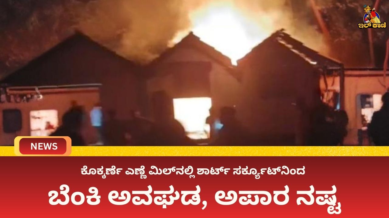 ಉಡುಪಿ : ಉಡುಪಿ ಜಿಲ್ಲೆಯ ಬ್ರಹ್ಮಾವರ ತಾಲೂಕಿನ ಕೊಕ್ಕರ್ಣೆ ಪ್ರದೇಶದಲ್ಲಿ ವಿದ್ಯುತ್ ಶಾರ್ಟ್ ಸರ್ಕ್ಯೂಟ್ನಿಂದ ಬೃಹತ್ ಬೆಂಕಿ ಅವಘಡ ಸಂಭವಿಸಿದೆ. ಕೊಕ್ಕರ್ಣೆ ಬಸ್ ನಿಲ್ದಾಣದ ಸಮೀಪದಲ್ಲಿರುವ ಭಾಗೀರಥಿ ಎಣ್ಣೆ ಮಿಲ್ನಲ್ಲಿ ಸಂಜೆಯ ಹೊತ್ತಿಗೆ ಬೆಂಕಿ ಕಾಣಿಸಿಕೊಂಡಿದ್ದು, ಕೆಲವು ಕ್ಷಣಗಳಲ್ಲಿ ವೇಗವಾಗಿ ವ್ಯಾಪಿಸಿತು.