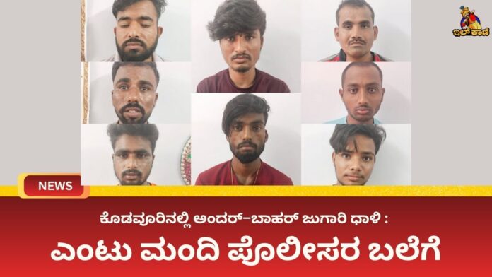 ಗುರುವಾರ ಸಂಜೆ ಸಂಜೆ 5 ಅಂದರ್–ಬಾಹರ್ ಇಸ್ಪೀಟಿನ ಜೂಜಾಟ ನಡೆಯುತ್ತಿದೆ ಎಂಬ ಮಾಹಿತಿ ಆಧರಿಸಿ, ಮಲ್ಪೆ ಪೊಲೀಸ್ ರು ಸ್ಥಳಕ್ಕೆ ಧಾಳಿ ನಡೆಸಿ, ಜೂಜಾಟದಲ್ಲಿ ತೊಡಗಿದ್ದ ಉಮೇಶ್, ಸಿದ್ರಾಮೇಶ, ಹನುಮೇಶ, ಮಲ್ಲಿಕಾರ್ಜುನ ಹಡಪದ, ಶಿವಪ್ಪ ಸರದಾರ, ವಿರೂಪಾಕ್ಷ, ಬಸವರಾಜ ಹಾಗೂ ಜಗದೀಶ ಅವರನ್ನು ಪೊಲೀಸರು ವಶಕ್ಕೆ ಪಡೆದುಕೊಂಡಿದ್ದಾರೆ.