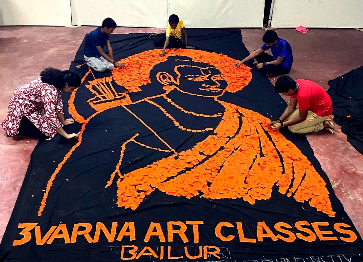 ಕಾರ್ಕಳ : ಶ್ರೀ ರಾಮ ನವಮಿಯ ಪ್ರಯುಕ್ತ ಕಾರ್ಕಳ ಬೈಲೂರಿನ ತ್ರಿವರ್ಣ ಆರ್ಟ್ ಕ್ಲಾಸಸ್ ಹಾಗೂ ಕರಾವಳಿ ಯೂತ್ ಕ್ಲಬ್ ರಿ. ಉಡುಪಿ ಸಹಯೋಗದ ವತಿಯಿಂದ ಇಲ್ಲಿನ ಕಲಾ ತರಗತಿಯ ವಿದ್ಯಾರ್ಥಿಗಳು ರಚಿಸಿರುವ 200 ಅಡಿ ವಿಸ್ತೀರ್ಣದ ಕಪ್ಪು ಮತ್ತು ಕೇಸರಿ ಬಟ್ಟೆಯಲ್ಲಿ ಅರಳಿದ ಶ್ರೀ ರಾಮನ ಅದ್ಭುತ ಕಲಾಕೃತಿಯು ಅನಾವರಣ ಮಾಡಲಾಯಿತು.