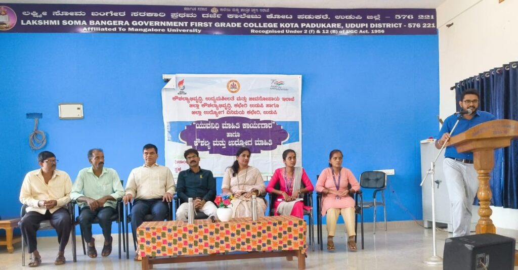 ಉಡುಪಿ: ಯುವಜನರನ್ನು ಉತ್ಪಾದಕ ಶಕ್ತಿಯನ್ನಾಗಿ ರೂಪಿಸುವ ಉದ್ದೇಶದಿಂದ ಕರ್ನಾಟಕ ಸರ್ಕಾರ ಜಾರಿಗೆ ತಂದಿರುವ ಯುವನಿಧಿ ಯೋಜನೆ ಕುರಿತು ಅರಿವು ಮೂಡಿಸುವ ಕಾರ್ಯಕ್ರಮವು ಕೋಟ–ಪಡುಕರೆದಲ್ಲಿರುವ ಶ್ರೀ ಲಕ್ಷ್ಮೀ ಸೋಮ ಬಂಗೇರ ಸರಕಾರಿ ಪ್ರಥಮ ದರ್ಜೆ ಕಾಲೇಜಿನಲ್ಲಿ ನಡೆಯಿತು. ಉಡುಪಿ ಜಿಲ್ಲಾ ಉದ್ಯೋಗ ವಿನಿಮಯ ಕೇಂದ್ರ ಹಾಗೂ ಕೌಶಲ್ಯ ಅಭಿವೃದ್ಧಿ, ಉದ್ಯಮಶೀಲತೆ ಮತ್ತು ಜೀವನೋಪಾಯ ಇಲಾಖೆಯ ಸಹಯೋಗದಲ್ಲಿ ಮಾರ್ಚ್ 4ರಂದು ಆಯೋಜಿಸಲಾದ ಈ ಕಾರ್ಯಾಗಾರದಲ್ಲಿ ಕಾಲೇಜಿನ ಪದವಿ ವಿದ್ಯಾರ್ಥಿಗಳಿಗೆ ಯೋಜನೆಯ ಕುರಿತು ವಿವರವಾದ ಮಾಹಿತಿ ನೀಡಲಾಯಿತು.