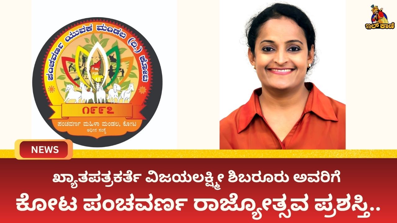 ಕೋಟ: ಕೋಟ ಪಂಚವರ್ಣ ಯುವಕ ಮಂಡಲ ಕೋಟ ಹಾಗೂ ಪ್ರವರ್ತಿತ ಸಂಸ್ಥೆ ಪಂಚವರ್ಣ ಮಹಿಳಾ ಮಂಡಲದ ನೇತೃತ್ವದಲ್ಲಿ ಪಂಚವರ್ಣ ರಾಜ್ಯೋತ್ಸವ ಪ್ರಶಸ್ತಿಯನ್ನು ನೀಡುತ್ತಾ ಬಂದಿದ್ದು ಈ ಬಾರಿ ಕನ್ನಡ ನಾಡು ಕಂಡ ಶ್ರೇಷ್ಠ ಪತ್ರಕರ್ತೆ ರಾಜ್ಯ ಪರಿಸರ ಪತ್ರಿಕೋದ್ಯಮ ಪ್ರಶಸ್ತಿ ಪುರಸ್ಕೃತೆ ವಿಜಯಲಕ್ಷ್ಮೀ ಶಿಬರೂರು ಇವರಿಗೆ ಗಣ್ಯರ ಸಮ್ಮುಖದಲ್ಲಿ ಪಂಚವರ್ಣ ರಾಜ್ಯೋತ್ಸವ ಪ್ರಶಸ್ತಿ ಪ್ರದಾನ ಮಾಡಲಿದೆ.