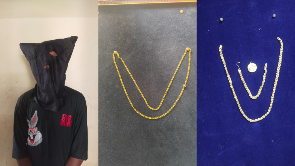ಉಡುಪಿ: ಕುರ್ಕಾಲು ಗ್ರಾಮದ ಶಂಕರಪುರದಲ್ಲಿ ಫೆಬ್ರವರಿ 21ರಂದು ಬೆಳಗ್ಗೆ ನಡೆದ ಮಹಿಳೆಯ ಚಿನ್ನದ ಸರ ಸುಲಿಗೆ ಪ್ರಕರಣವನ್ನು ಪೊಲೀಸರು ಅತ್ಯಂತ ಕ್ಷಿಪ್ರವಾಗಿ ಭೇದಿಸಿ, ಕೇವಲ ಮೂರು ಗಂಟೆಯೊಳಗೆ ಆರೋಪಿಗಳನ್ನು ಬಂಧಿಸುವಲ್ಲಿ ಯಶಸ್ವಿಯಾಗಿದ್ದಾರೆ.
