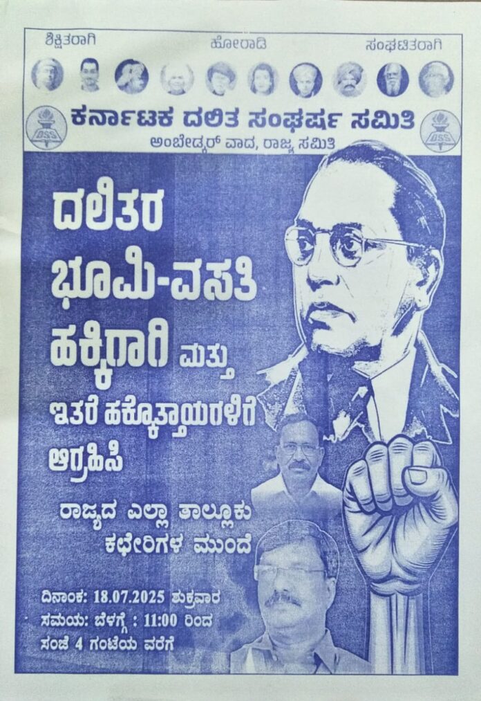ಜುಲೈ18 ರಂದು ಜಿಲ್ಲೆಯ ಎಲ್ಲಾ ತಾಲೂಕು ಕಚೇರಿಗಳ ಮುಂದೆ ದಸಂಸ ಪ್ರತಿಭಟನೆ