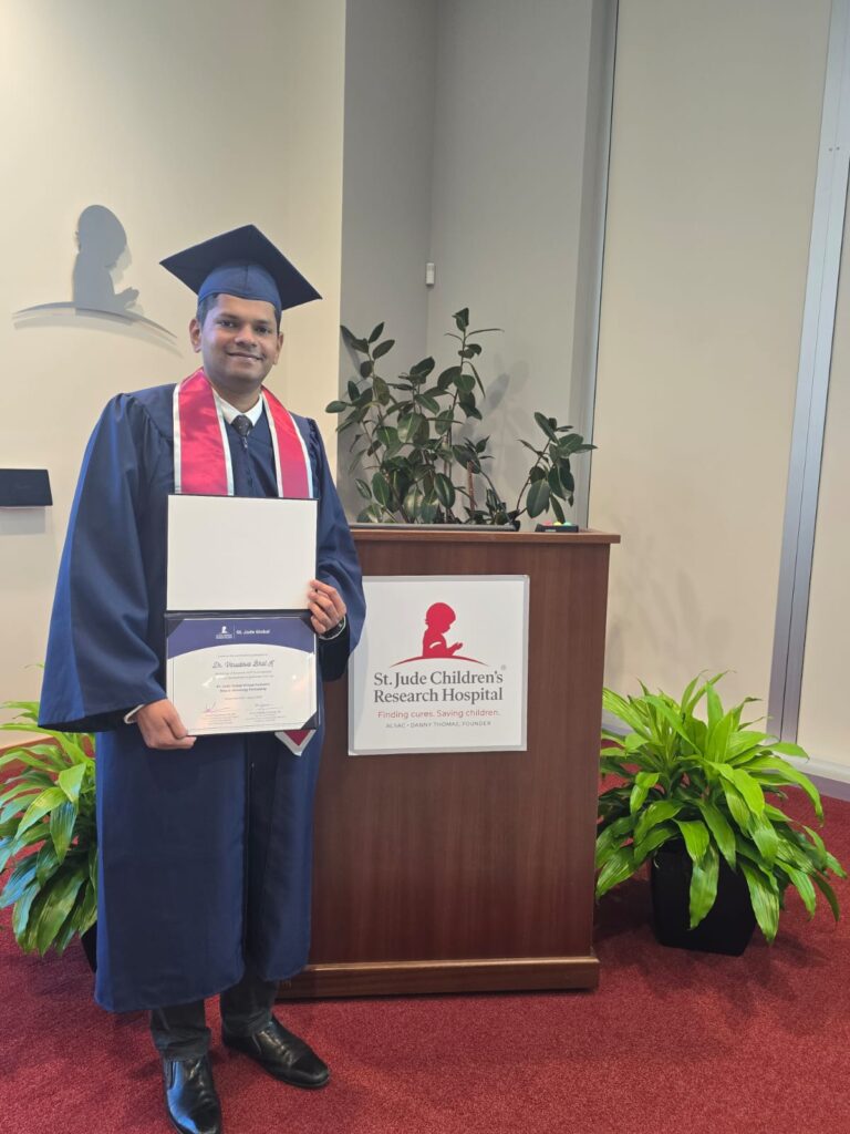 ಸೆಂಟ್ ಜೂಡ್ನಲ್ಲಿ ಮಕ್ಕಳ ನರ-ಆಂಕೊಲಾಜಿ ಸೇವೆಗಳನ್ನು ಮುನ್ನಡೆಸುತ್ತಿರುವ ಫೆಲೋಶಿಪ್ನ ಕಾರ್ಯಕ್ರಮ ನಿರ್ದೇಶಕ ಡಾ. ಇಬ್ರಾಹಿಂ ಖಡ್ಡೌಮಿ ಅವರು ಪ್ರಮಾಣಪತ್ರವನ್ನು ಪ್ರದಾನ ಮಾಡಿದರು. ಈ ಸಾಧನೆಯು ಮಹತ್ವದ ಮೈಲಿಗಲ್ಲನ್ನು ಗುರುತಿಸುತ್ತದೆ, ಏಕೆಂದರೆ ಇದು ಭಾರತದಲ್ಲಿ ಮಕ್ಕಳ ನರ-ಆಂಕೊಲಾಜಿ ಕ್ಷೇತ್ರದಲ್ಲಿ ನೀಡಲಾಗುವ ಮೊದಲ ಫೆಲೋಶಿಪ್ ಆಗಿದೆ.