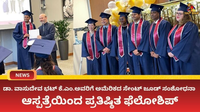 ಮಣಿಪಾಲ : ಜಾಗತಿಕವಾಗಿ ಪ್ರಸಿದ್ಧವಾದ ಸೇಂಟ್ ಜೂಡ್ ಮಕ್ಕಳ ಸಂಶೋಧನಾ ಆಸ್ಪತ್ರೆ, ಟೆನ್ನೆಸ್ಸೀ, ಮೆಂಫಿಸ್, ಅಮೇರಿಕದಿಂದ ಕಸ್ತೂರ್ಬಾ ವೈದ್ಯಕೀಯ ಕಾಲೇಜು ಮತ್ತು ಆಸ್ಪತ್ರೆಯ ಮಕ್ಕಳ ಆಂಕೊಲೊಜಿ ವಿಭಾಗದ ಪ್ರಾದ್ಯಾಪಕ ಮತ್ತು ಮುಖ್ಯಸ್ಥ ಡಾ. ವಾಸುದೇವ ಭಟ್ ಕೆ.ಎಂ. ಅವರು ಮಕ್ಕಳ ನರ-ಆಂಕೊಲಾಜಿಯಲ್ಲಿ ಪ್ರತಿಷ್ಠಿತ ಫೆಲೋಶಿಪ್ ಪಡೆದಿದ್ದಾರೆ.