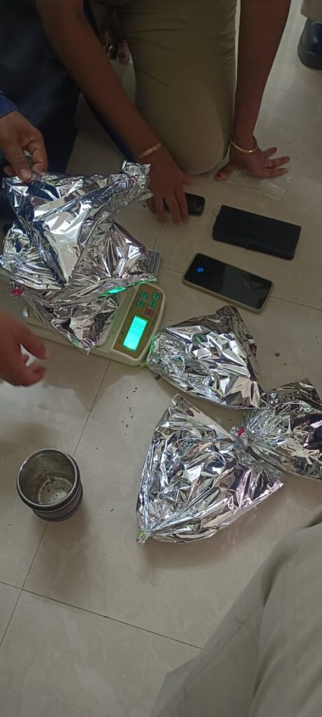 ಕೇರಳದ ಕಾರ್ಮಿಕರಾದ ಅಜೀಸ್(28) ಮತ್ತು ವಿಪಿನ್ (32), ಬಿಪಿನ್(24), ಅಖಿಲ್ (26) ಹಾಗೂ ಇತರ ಇಬ್ಬರನ್ನು ಗಾಂಜಾ ಸೇವನೆಯ ಹಿನ್ನಲೆ ವಶಕ್ಕೆ ಪಡೆಯಲಾಗಿತ್ತು. ಪರೀಕ್ಷೆ ನಡೆಸಿದಾಗ ನಾಲ್ವರು ಆರೋಪಿಗಳು ಗಾಂಜಾ ಸೇವಿಸಿರುವುದು ದೃಢವಾಗಿದೆ. ವಿಚಾರಣೆ ನಡೆಸಿದಾಗ ಆರೋಪಿಗಳಿಗೆ ಮಿಥುನ ಎನ್ನುವಾತ ಗಾಂಜಾ ಮಾರಾಟ ಮಾಡಿದ್ದಾಗಿ ತಿಳಿಸಿದ್ದಾರೆ. ಆರೋಪಿಗಳ ಮಾಹಿತಿ ಮೇರೆಗೆ ಹೆರ್ಗ ಗ್ರಾಮದ ಈಶ್ವರನಗರ ನರಸಿಂಹ ದೇವಸ್ಥಾನ ರಸ್ತೆಯ ಬಳಿ, ಮಣಿಪಾಲ ಆಟೋ ಬಾರ್ ಕಟ್ಟಡದ ಮೊದಲನೇ ಮಹಡಿಯ ರೂಮ್ ನಂಬರ್ 03 ಕ್ಕೆ ಸಿಬ್ಬಂದಿಗಳೊಂದಿಗೆ ದಾಳಿ ನಡೆಸಿದಾಗ, ಗಾಂಜಾ ಮಾರಾಟ ಮಾಡುತ್ತಿದ್ದಾಗಲೇ ಆರೋಪಿಗಳಾದ ಅಫ್ಶಿನ್ (26) ಮತ್ತು ಶಿವನಿಧಿ ಆಚಾರ್ಯ (20) ಸಿಕ್ಕಿ ಬಿದ್ದಿದ್ದಾರೆ. ಆರೋಪಿಗಳು ಬೆಂಗಳೂರಿನಿಂದ ಗಾಂಜಾ ಮತ್ತು ಎಲ್ ಎಸ್ ಡಿ ಡ್ರಗ್ಸ್ ತರಿಸಿ ಮಣಿಪಾಲದಲ್ಲಿ ಮಾರಾಟ ಮಾಡುತ್ತಿದ್ದ ಎನ್ನಲಾಗಿದೆ. ಆರೋಪಿತರುಗಳಿಂದ 1 kg 237 ಗ್ರಾಂ ಗಾಂಜಾ, 0.038 ಗ್ರಾಂ LSD ಸ್ಟ್ರಿಪ್, ಡಿಜಿಟಲ್ ಸ್ಕೇಲ್-1 ಮತ್ತು ನಗದು ಸಹಿತ ಇನ್ನಿತರ ವಸ್ತುಗಳನ್ನು ಮಣಿಪಾಲ ಪೊಲೀಸ್ ರು ವಶಕ್ಕೆ ಠಾಣೆಯಲ್ಲಿ ಪ್ರಕರಣ ದಾಖಲಿದ್ದಾರೆ. ಬಳಿಕ ತನಿಖೆ ಮುಂದುವರೆಸಿದ ಮಣಿಪಾಲ್ ಪೊಲೀಸ್ ರು ಮನೀಶ್ (34) ಎನ್ನುವಾತನನ್ನು ಮಣಿಪಾಲ ವಿದ್ಯಾರತ್ನ ನಗರದ ಮಾಂಡವಿ ಸಫಯಾರ್ ಅಪಾರ್ಟಮೆಂಟ್ ನ ಫ್ಲಾಟ್ ಗೆ ಧಾಳಿ ಮಾಡಿ ಆರೋಪಿಯ ಮನೆಯಲ್ಲಿ ಇದ್ದ 653 ಗ್ರಾಂ ಗಾಂಜಾ, 2 ಡಿಜಿಟಲ್ ಸ್ಕೇಲ್, 1 ಗಾಂಜಾ ಕ್ರಷರ್, 3000 ರೂಪಾಯಿ ನಗದು ಹಾಗೂ 1 ಮೊಬೈಲ್ ಪೋನನ್ನು ಸ್ವಾಧೀನಪಡಿಸಿಕೊಂಡು 3 ಜನ ಆರೋಪಿಗಳನ್ನು ನ್ಯಾಯಾಲಯಕ್ಕೆ ಹಾಜರುಪಡಿಸಿದ್ದು , ನ್ಯಾಯಾಲಯವು ಆರೋಪಿತರಿಗೆ ನ್ಯಾಯಾಂಗ ಬಂಧನ ವಿಧಿಸಿದೆ.