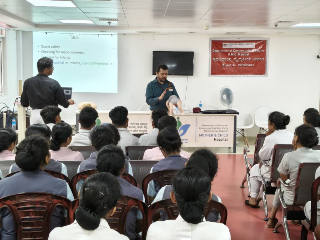 ಸಮುದಾಯ ವೈದ್ಯಕೀಯ ವಿಭಾಗದ ಮುಖ್ಯಸ್ಥರಾದ ಡಾ. ಅಶ್ವಿನಿ ಕುಮಾರ್ ಅವರ ಮಾರ್ಗದರ್ಶನದಲ್ಲಿ ಕೆ.ಎಂ.ಸಿ. ಮಣಿಪಾಲದ ಮಕ್ಕಳ ವಿಭಾಗದ ಡಾ. ಸಂದೀಪ್ ಮತ್ತು ತುರ್ತು ಚಿಕಿತ್ಸಾ ವಿಭಾಗದ ಡಾ. ನೀರಜಾ ಅವರು ಸಿಬ್ಬಂದಿಗಳ ಸಹಕಾರದೊಂದಿಗೆ ತಾಯಿ ಮಕ್ಕಳ ಆಸ್ಪತ್ರೆ (ಎಂ.ಸಿ.ಹೆಚ್.) ಯ ಸುಮಾರು 100 ಜನ ಸಿಬ್ಬಂದಿಗಳು ಹಾಗೂ ವಿದ್ಯಾರ್ಥಿಗಳಿಗೆ ವಿವಿಧ ಹಂತಗಳಲ್ಲಿ ಸಿ.ಪಿ.ಆರ್. ಕುರಿತು ಮಾಹಿತಿ ನೀಡಿದರು. ಸಮುದಾಯ ವೈದ್ಯಕೀಯ ವಿಭಾಗದ ಡಾ. ರತ್ನಾ ಹಾಗೂ ಇನ್ನಿತರ ಸಿಬ್ಬಂದಿಗಳು ಸಿ.ಪಿ.ಆರ್. ಕುರಿತು ಪ್ರಾಯೋಗಿಕವಾಗಿ ಮಾಹಿತಿ ನೀಡಿದರು. ಸಮುದಾಯ ವೈದ್ಯಕೀಯ ವಿಭಾಗದ ಸಾಮಾಜಿಕ ಕಾರ್ಯಕರ್ತರಾದ ಮಹೇಶ್ ಹಾಗೂ ವಿದ್ಯಾ ಅವರು ಸಹಕರಿಸಿದರು.