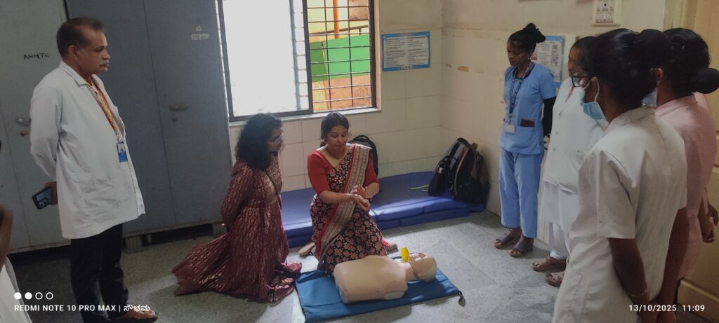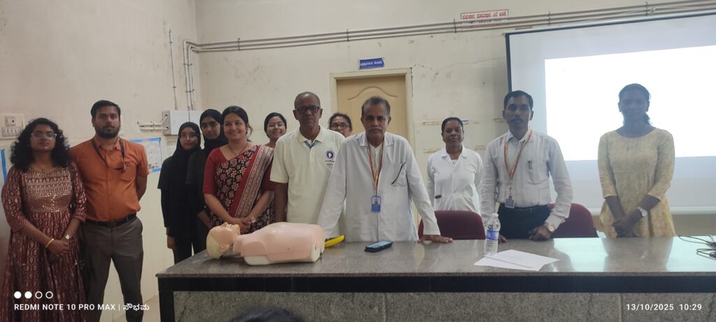 ಡಾ. ದಿವ್ಯ ಡಾ.ಹೊಳ್ಳ ಇವರ ತಂಡವು ರೋಗಿಯೊಬ್ಬರು ಹೃದಯ ಸ್ತಂಭನಕ್ಕೂಳಗಿದಾಗ ಸಿ.ಪಿ.ಆರ್.ನ ಮಹತ್ವದ ಬಗ್ಗೆ ಕುರಿತು ಉಪಾನ್ಯಾಸ ಹಾಗೂ ಪ್ರಾಯೋಗಿಕವಾಗಿ ಹೇಗೆ ಸಿಪಿಆರ್ ನ ಮಾಡಬೇಕು ಎಂದು ತಿಳಿಸಿಕೊಟ್ಟರು. ಮೊದಲಿಗೆ ಜಿಲ್ಲಾ ಆಸ್ಪತ್ರೆಯ ಆರ್.ಎಂ.ಓ ಡಾ. ವಾಸುದೇವ್, ಡಾ. ರತ್ನ ಡಾ. ಮೇರಿ ಉಪಸ್ಥಿತರಿದ್ದರು