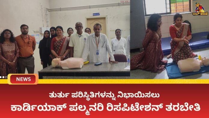 ಉಡುಪಿ : ಉಡುಪಿ ಜಿಲ್ಲಾ ಆಸ್ಪತ್ರೆ ಹಾಗೂ ಕೆ.ಎಂ.ಸಿ ಮಣಿಪಾಲ್ ಸಮುದಾಯ ವೈದ್ಯಕೀಯ ವಿಭಾಗದ ಸಹಯೋಗದೊಂದಿಗೆ ತುರ್ತು ಪರಿಸ್ಥಿತಿಗಳನ್ನು ನಿಭಾಯಿಸಲು ಆಸ್ಪತ್ರೆಯ ಶೂಶ್ರಷಕ ಅಧಿಕಾರಿಗಳಿಗೆ ಹಾಗೂ ಭದ್ರತಾ ಸಿಬ್ಬಂದಿ ಮತ್ತು ಆಸ್ಪತ್ರೆಯ ಇತರೆ ಸಿಬ್ಬಂದಿಗಳಿಗೆ ಜ್ಞಾನ ಮತ್ತು ಕೌಶಲ್ಯಗಳನ್ನು ಸುದಾರಿಸುವ ಗುರಿಯನ್ನು ಹೋದಿರುವ ಕಾರ್ಡಿಯಾಕ್ ಪಲ್ಮನರಿ ರಿಸಪಿಟೇಶನ್ ತರಭೇತಿ ಕಾರ್ಯಕ್ರಮವನ್ನು ಆಯೋಜಿಸಲಾಗಿತ್ತು.