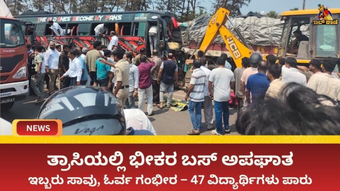 ಉಡುಪಿ : ಉಡುಪಿ ಜಿಲ್ಲೆಯ ಬೈಂದೂರು ತಾಲೂಕಿನ ತ್ರಾಸಿ ಸಮೀಪ ರಾಷ್ಟ್ರೀಯ ಹೆದ್ದಾರಿಯಲ್ಲಿ ಕಾಲೇಜು ವಿದ್ಯಾರ್ಥಿಗಳನ್ನು ಕರೆದುಕೊಂಡು ಬರುತ್ತಿದ್ದ ಬಸ್ ಅಪಘಾತಕ್ಕೀಡಾಗಿ ಇಬ್ಬರು ಮೃತಪಟ್ಟಿದ್ದು, ಓರ್ವ ಗಂಭೀರವಾಗಿ ಗಾಯಗೊಂಡ ಘಟನೆ ನಡೆದಿದೆ.
