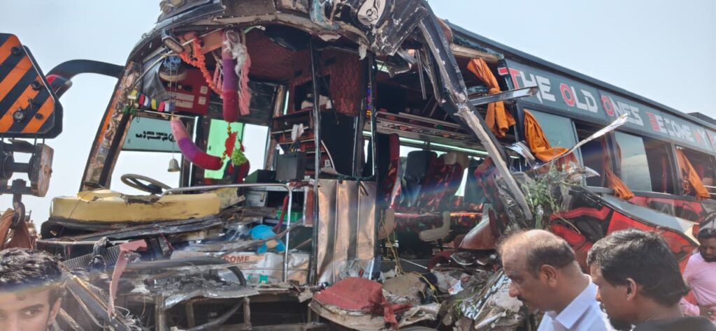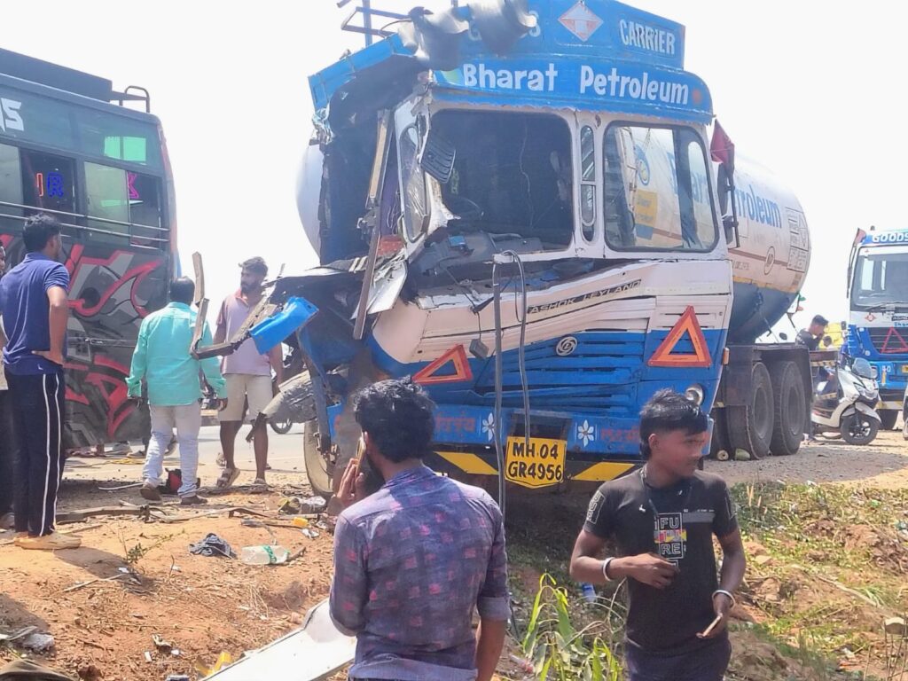 ಮುರುಡೇಶ್ವರದಿಂದ ಉಡುಪಿ ಕಡೆಗೆ ಬರುತ್ತಿದ್ದ ಬಸ್ ರಾಷ್ಟ್ರೀಯ ಹೆದ್ದಾರಿ ಪಕ್ಕದಲ್ಲಿ ನಿಂತಿದ್ದ ಲಾರಿ ಹಾಗೂ ಟ್ಯಾಂಕರ್ಗೆ ಡಿಕ್ಕಿ ಹೊಡೆದ ಪರಿಣಾಮ ಅಪಘಾತ ಸಂಭವಿಸಿದೆ. ಅಪಘಾತದ ತೀವ್ರತೆಗೆ ಬಸ್ನ ಅಡುಗೆ ಸಹಾಯಕ ಹಾಗೂ ಚಾಲಕ ಸ್ಥಳದಲ್ಲೇ ಮೃತಪಟ್ಟಿದ್ದಾರೆ. ಬಸ್ ಕ್ಲೀನರ್ ಗಂಭೀರವಾಗಿ ಗಾಯಗೊಂಡಿದ್ದು ಆಸ್ಪತ್ರೆಗೆ ದಾಖಲಿಸಲಾಗಿದೆ.