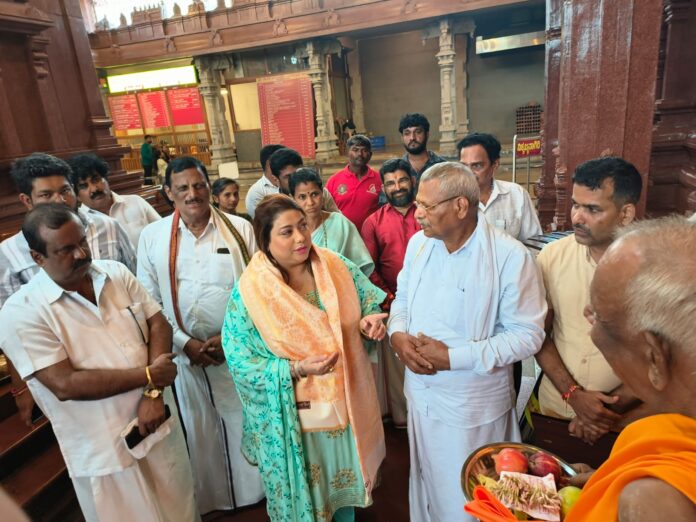 ಉಡುಪಿ : ಉಡುಪಿ ಜಿಲ್ಲೆಯ ಪ್ರಸಿದ್ಧ ಧಾರ್ಮಿಕ ತಾಣ ಕಾಪು ಶ್ರೀ ಹೊಸ ಮಾರಿಗುಡಿ ದೇವಸ್ಥಾನ, ಕಾರಣಿಕದ ಕ್ಷೇತ್ರವಾಗಿ ಗುರುತಿಸಿಕೊಂಡಿದೆ. ಇಂದು ಕಟೀಲು ದೇವಸ್ಥಾನಕ್ಕೆ ಆಗಮಿಸಿದ್ದ ನಟಿ ರಕ್ಷಿತಾ ಪ್ರೇಮ್ ಅವರು ಕಾಪುವಿಗೆ ಆಗಮಿಸಿ ಉಚ್ಚಂಗಿ ಸಹಿತ ಶ್ರೀ ಮಾರಿಯಮ್ಮನ ದರುಶನ ಪಡೆದರು, ದೇವಳದ ಪ್ರಧಾನ ಅರ್ಚಕ ವೇದಮೂರ್ತಿ ಶ್ರೀನಿವಾಸ ತಂತ್ರಿ ಕಲ್ಯಾ ಅವರು ವ್ಯವಸ್ಥಾಪನಾ ಸಮಿತಿ ಮತ್ತು ಅಭಿವೃದ್ಧಿ ಸಮಿತಿಯ ಸಮ್ಮುಖದಲ್ಲಿ ಗೌರವಿಸಿ ಅಮ್ಮನ ಅನುಗ್ರಹ ಪ್ರಸಾದ ನೀಡಿದರು.