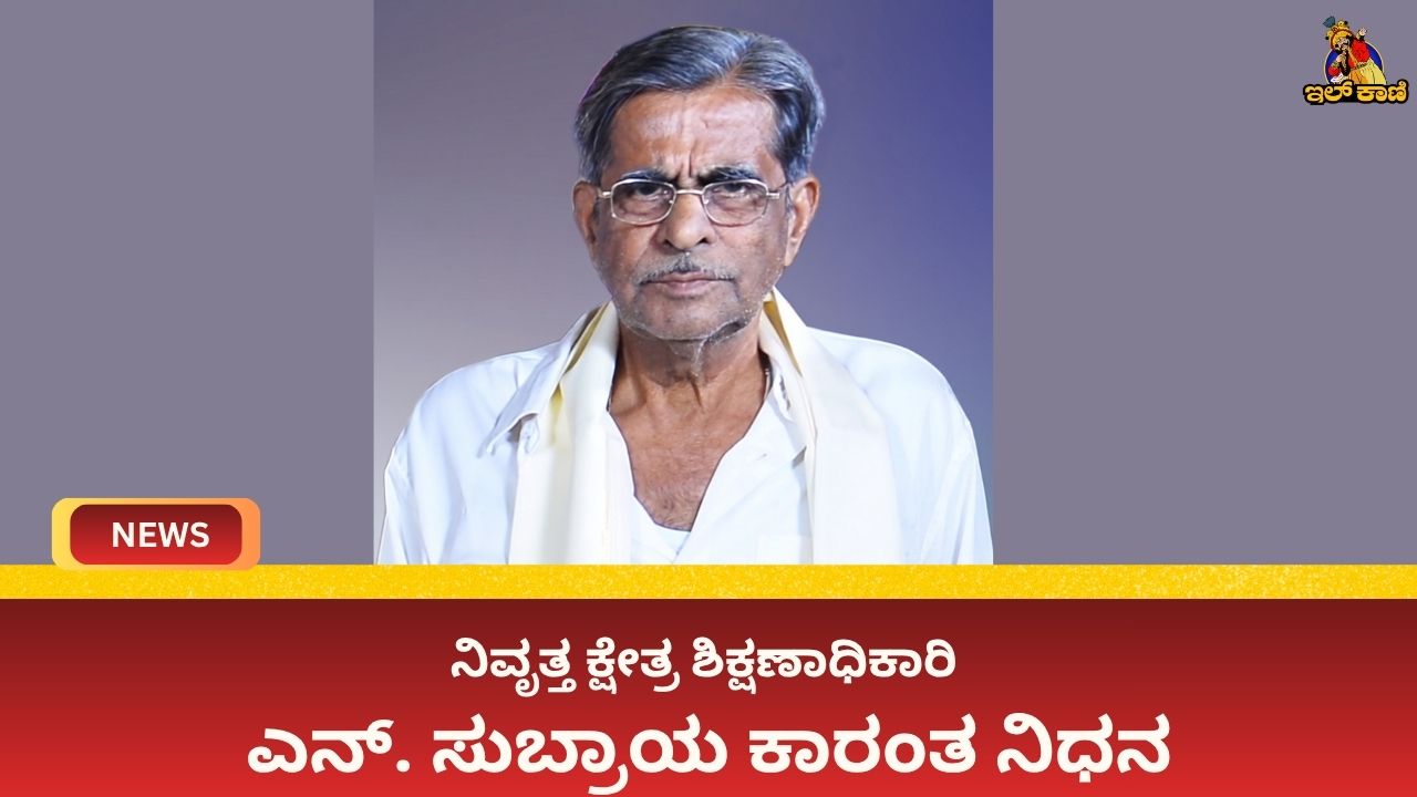 ಉಡುಪಿ : ಉಡುಪಿಯ ನಿವೃತ್ತ ಕ್ಷೇತ್ರ ಶಿಕ್ಷಣಾಧಿಕಾರಿ ಎನ್. ಸುಬ್ರಾಯ ಕಾರಂತ (88) ಅವರು ಏಪ್ರಿಲ್ 19ರಂದು ಉಡುಪಿ ಪುತ್ತೂರಿನಲ್ಲಿರುವ ಸಂಬಂಧಿಕರ ಮನೆಯಲ್ಲಿ ದೀರ್ಘಕಾಲದ ಅನಾರೋಗ್ಯದಿಂದ ನಿಧನರಾದರು.