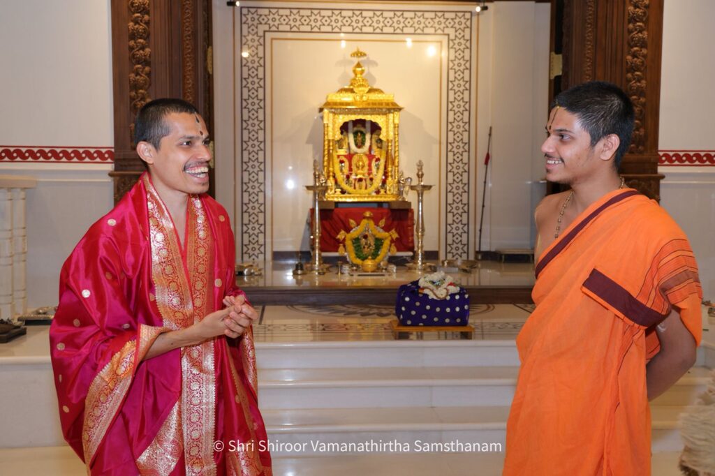 ಈ ಸಂದರ್ಭದಲ್ಲಿ ಪರ್ತಗಾಳಿ ಮಠದ ಶ್ರೀಮದ್ ವಿದ್ಯಾಧೀಶ ತೀರ್ಥ ಶ್ರೀಪಾದರನ್ನು ಶ್ರೀ ವೇದವರ್ಧನ ತೀರ್ಥ ಶ್ರೀಪಾದರು ಭೇಟಿಯಾಗಿ, ಪರಸ್ಪರ ಆತ್ಮೀಯ ಗೌರವ ವಿನಿಮಯ ನಡೆಸಿದರು. ಬಳಿಕ ತಮ್ಮ ಪಟ್ಟದ ದೇವರ ದರ್ಶನವನ್ನು ನೆರವೇರಿಸಿದರು.