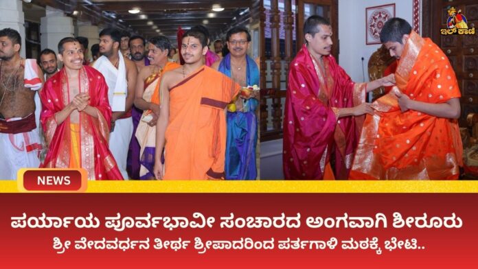 ಉಡುಪಿ : ಭಾವೀ ಪರ್ಯಾಯ ಪೀಠಾಧೀಶರಾಗಿರುವ ಹಾಗೂ ಪ್ರಥಮ ಬಾರಿಗೆ ಸರ್ವಜ್ಞ ಪೀಠವನ್ನು ಅಲಂಕರಿಸಲಿರುವ ಶೀರೂರು ಶ್ರೀಮಠದ ಶ್ರೀ ಶ್ರೀ ವೇದವರ್ಧನ ತೀರ್ಥ ಶ್ರೀಪಾದರು, ಪ್ರಸ್ತುತ ಪರ್ಯಾಯ ಪೂರ್ವಭಾವೀ ಸಂಚಾರದ ಅಂಗವಾಗಿ ಶ್ರೀ ಸಂಸ್ಥಾನ ಗೋಕರ್ಣ ಪರ್ತಗಾಳಿ ಜೇವೊತ್ತಮ ಮಠ, ಪರ್ತಗಾಳಿ (ಗೋವಾ) ಇಲ್ಲಿಗೆ ಭಕ್ತಿಪೂರ್ವಕವಾಗಿ ಭೇಟಿ ನೀಡಿದರು.