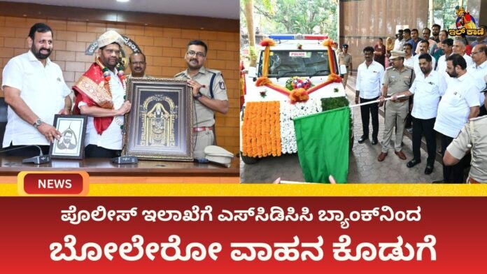 ಪೊಲೀಸ್ ಇಲಾಖೆಗೆ ಎಸ್‌ಸಿಡಿಸಿಸಿ ಬ್ಯಾಂಕ್‌ನಿಂದ ಬೋಲೇರೋ ವಾಹನ ಕೊಡುಗೆ
