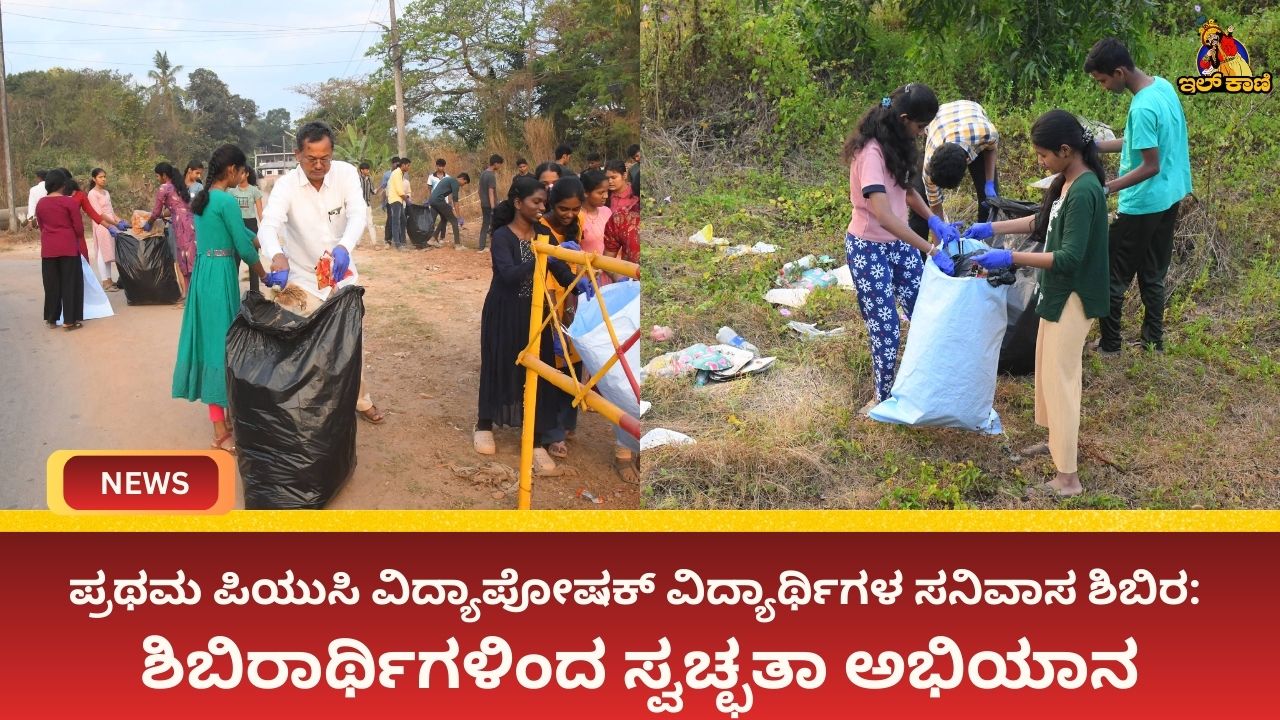 ಪ್ರಥಮ ಪಿಯುಸಿ ವಿದ್ಯಾಪೋಷಕ್ ವಿದ್ಯಾರ್ಥಿಗಳ ಸನಿವಾಸ ಶಿಬಿರ: ಶಿಬಿರಾರ್ಥಿಗಳಿಂದ ಸ್ವಚ್ಛತಾ ಅಭಿಯಾನ