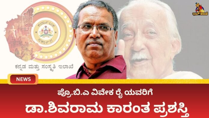 ಪ್ರೊ.ಬಿ.ಎ ವಿವೇಕ ರೈ ಯವರಿಗೆ ಡಾ.ಶಿವರಾಮ ಕಾರಂತ ಪ್ರಶಸ್ತಿ