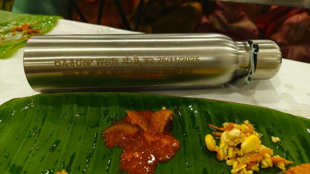 ಈ ವಿಶೇಷ ಮದುವೆಯಲ್ಲಿ ನೀರಿನ ಬಾಟಲಿ, ಪ್ಲೇಟು, ಚಮಚ, ಸ್ಟ್ರಾ, ಗ್ಲಾಸ್ ಸೇರಿದಂತೆ ಯಾವುದೇ ರೀತಿಯ ಏಕಬಳಕೆ ಪ್ಲಾಸ್ಟಿಕ್ ಬಳಕೆಯಾಗಿಲ್ಲ. ಬಂದ ಪ್ರತಿಯೋರ್ವ ಅತಿಥಿಗೂ ಕೂಡ ಸ್ಟೀಲ್ ಬಾಟಲಿಯ ಮೂಲಕ ಕುಡಿಯುವ ನೀರು ವಿತರಿಸಲಾಯಿತು. ಊಟದ ಟೇಬಲ್ ಗೆ ಕಬ್ಬಿನ ಸಿಪ್ಪೆಯಿಂದ ಮಾಡಿದ ಪೇಪರ್ ರೋಲ್, ಐಸ್ ಕ್ರೀಂ ಗೆ ಕಬ್ಬಿನ ಸಿಪ್ಪೆಯಿಂದ ಮಾಡಲಾದ ಕಪ್ ಮೂಲಕವೇ ವಿತರಣೆ ಮಾಡಲಾಯಿತು.