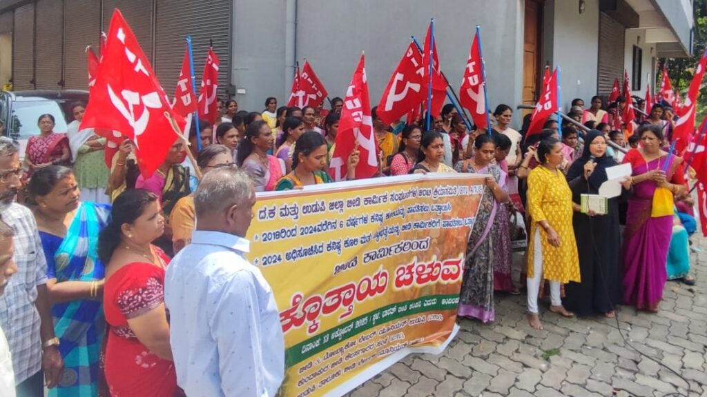 ಉಡುಪಿ : ದಕ್ಷಿಣ ಕನ್ನಡ ಮತ್ತು ಉಡುಪಿ ಜಿಲ್ಲೆಗಳ ಬೀಡಿ ಕಾರ್ಮಿಕರ ಸಮಸ್ಯೆಗಳಿಗೆ ತಕ್ಷಣದ ಪರಿಹಾರ ಒದಗಿಸಬೇಕೆಂದು ಆಗ್ರಹಿಸಿ, ಎರಡೂ ಜಿಲ್ಲೆಗಳ ಬೀಡಿ ಕಾರ್ಮಿಕರ ಸಂಘಗಳ ಜಂಟಿ ಕ್ರೀಯಾ ಸಮಿತಿಯ ನೇತೃತ್ವದಲ್ಲಿ 17ರವರೆಗೆ ಹಕ್ಕೊತ್ತಾಯ ಚಳುವಳಿಗೆ ಕರೆ ನೀಡಲಾಗಿದ್ದು, ಉಡುಪಿಯ ಭಾರತ್ ಬೀಡಿ ಕಂಪನಿಯ ಮುಂದೆ ಪ್ರತಿಭಟನೆ ನಡೆಯಿತು.