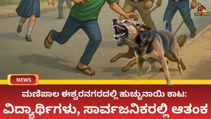 ಉಡುಪಿ: ಮಣಿಪಾಲದ ಈಶ್ವರನಗರ ಪ್ರದೇಶದಲ್ಲಿ ಹುಚ್ಚು ಹಿಡಿದ ನಾಯಿ ಧಾಳಿ ನಡೆಸಿ ವಿದ್ಯಾರ್ಥಿಗಳು ಸೇರಿದಂತೆ ಹಲವರಿಗೆ ಗಾಯಗಳಾದ ಘಟನೆ ಆತಂಕಕ್ಕೆ ಕಾರಣವಾಗಿದೆ. ಸ್ಥಳೀಯರ ಪ್ರಕಾರ, ಈಶ್ವರ ನಗರದಲ್ಲಿನ ಸಭಾಭವನದ ಬಳಿ ಬೀದಿ ನಾಯಿಗಳಿಗೆ ಕೆಲವರು ದಿನನಿತ್ಯ ಬಿಸ್ಕೆಟ್ ನೀಡಿ ಸಾಕು ನಾಯಿಗಳಂತೆ ಬೆಳೆಸುತ್ತಿದ್ದರೆಂದು ತಿಳಿದು ಬಂದಿದೆ. ಅದೇ ಗುಂಪಿನ ನಾಯಿಗಳಲ್ಲಿ ಒಂದು ನಾಯಿ ಇದೀಗ ಹುಚ್ಚುಹಿಡಿದ ಸ್ಥಿತಿಯಲ್ಲಿ ದಾರಿ ಹೋಕರಿಗೂ, ವಿದ್ಯಾರ್ಥಿಗಳಿಗೂ ಕಚ್ಚಿ ಪರಾರಿಯಾಗುತ್ತಿದೆ.