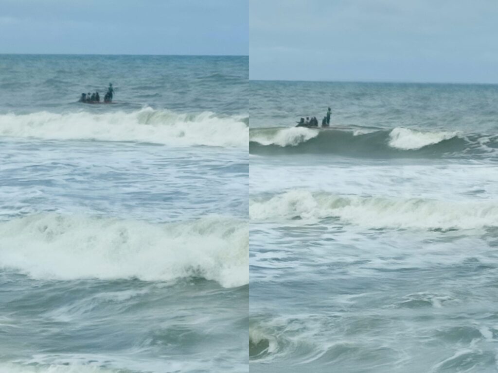 ಸೋಮವಾರ ಮುಂಜಾನೆ ನಾಡದೋಣಿಯಲ್ಲಿ ಮೀನುಗಾರಿಕೆಗೆ ತೆರಳಿದ್ದಾಗ, ಭಾರಿ ಗಾತ್ರದ ತೆರೆಗೆ ಸಿಲುಕಿ ದೋಣಿ ಮಗುಚಿ ಅವಘಡ ಸಂಭವಿಸಿದೆ. ದೋಣಿಯಲ್ಲಿದ್ದ ಮೀನುಗಾರರನ್ನು ಸ್ಥಳೀಯ ಮೀನುಗಾರರಾದ ಪ್ರಶಾಂತ್ ಮತ್ತು ವಿನೋದ್ ರಕ್ಷಣೆ ಮಾಡಿದ್ದಾರೆ.