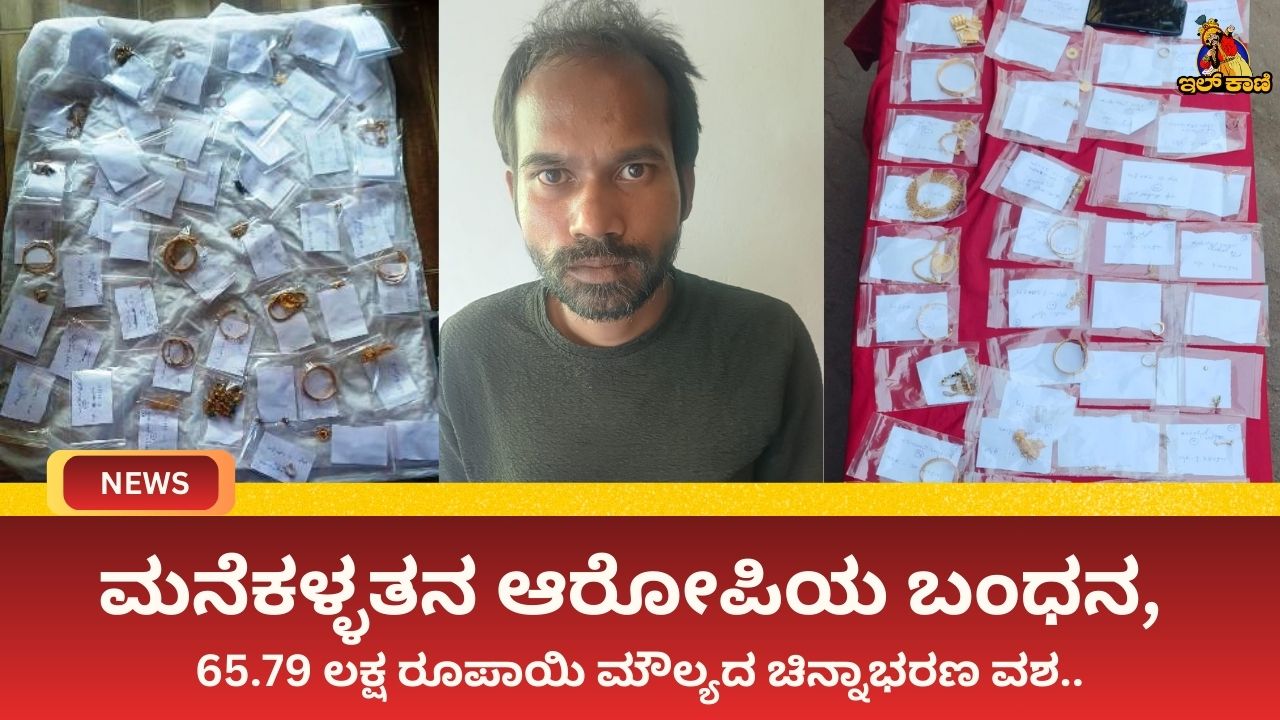 ಮನೆಕಳ್ಳತನ ಆರೋಪಿಯ ಬಂಧನ, 65.79 ಲಕ್ಷ ರೂಪಾಯಿ ಮೌಲ್ಯದ ಚಿನ್ನಾಭರಣ ವಶ..