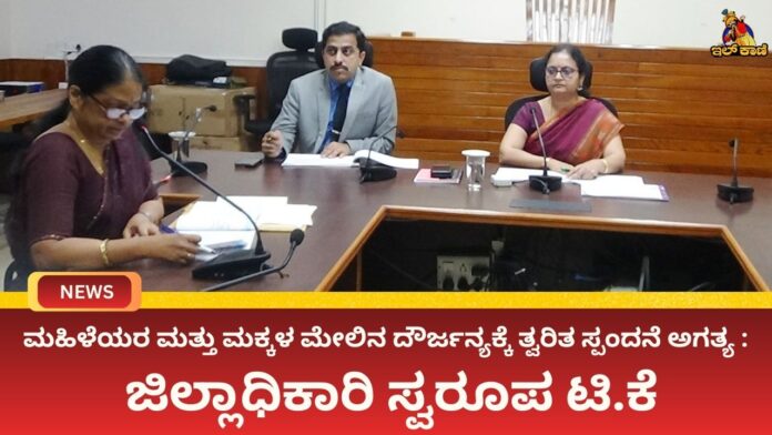 ಮಹಿಳೆಯರ ಮತ್ತು ಮಕ್ಕಳ ಮೇಲಿನ ದೌರ್ಜನ್ಯಕ್ಕೆ ತ್ವರಿತ ಸ್ಪಂದನೆ ಅಗತ್ಯ : ಜಿಲ್ಲಾಧಿಕಾರಿ ಸ್ವರೂಪ ಟಿ.ಕೆ