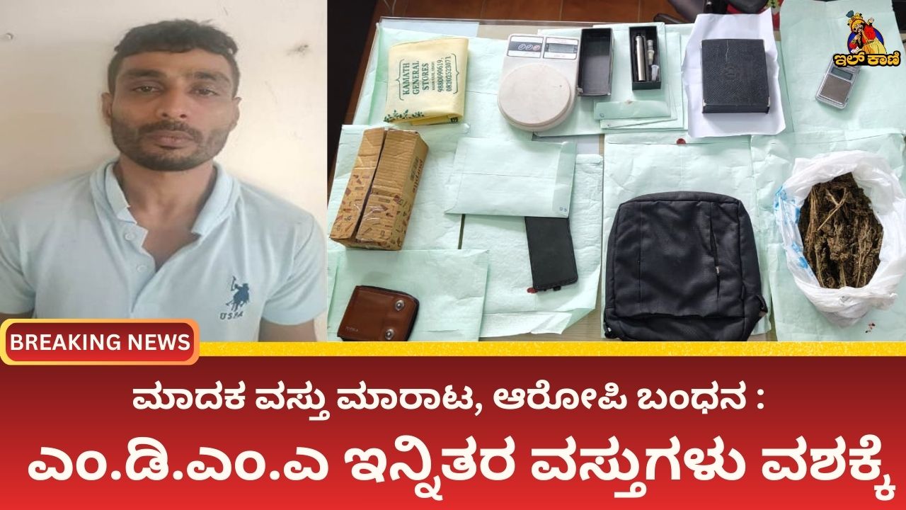 ಮಾದಕ ವಸ್ತು ಮಾರಾಟ, ಆರೋಪಿ ಬಂಧನ : 43,800 ರೂಪಾಯಿ ಮೌಲ್ಯದ ಎಂ.ಡಿ.ಎಂ.ಎ ಇನ್ನಿತರ ವಸ್ತುಗಳು ವಶಕ್ಕೆ
