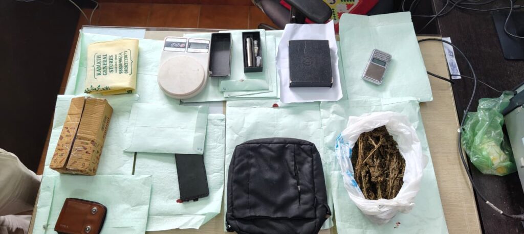 ಆತನ ಸ್ಕೂಟಿ ಪರೀಶಿಲನೆ ನಡೆಸಿದಾಗ, 205 ಗ್ರಾಂ ತೂಕದ ಗಾಂಜಾ, 0.49 ಗ್ರಾಂ ತೂಕದ ಎಂ.ಡಿ.ಎಂ.ಎ 2 ಪ್ಲಾಸ್ಟಿಕ್ ಕವರ್ ಗಳು, ಸಮೇತ 0.33 ಗ್ರಾಂ ತೂಕದ ಎಂ.ಡಿ.ಎಂ.ಎ  ಪ್ಲಾಸ್ಟಿಕ್ ಕವರ್ ಸೇರಿ ಒಟ್ಟು 43,800 ರೂಪಾಯಿ ಮೌಲ್ಯದ ಎಂ.ಡಿ.ಎಂ.ಎ , ತೂಕದ ಯಂತ್ರ, ಮತ್ತಿತರರು ವಸ್ತುಗಳು ಪತ್ತೆಯಾಗಿದೆ.
