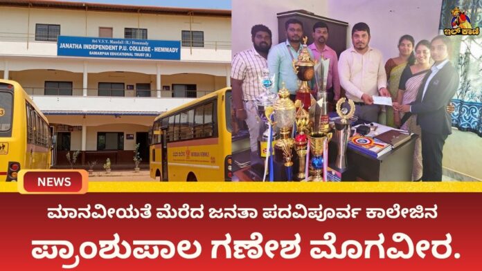 ಮಾನವೀಯತೆ ಮೆರೆದ ಜನತಾ ಪದವಿಪೂರ್ವ ಕಾಲೇಜಿನ ಪ್ರಾಂಶುಪಾಲ ಗಣೇಶ ಮೊಗವೀರ.