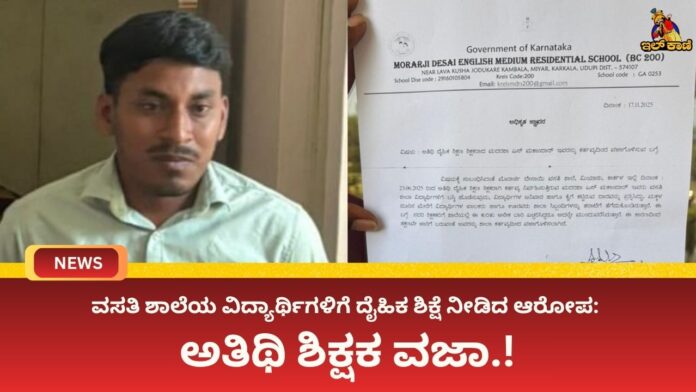 ಉಡುಪಿ: ಕಾರ್ಕಳ ತಾಲೂಕು ಮೀಯಾರು ಮೊರಾರ್ಜಿ ದೇಸಾಯಿ ಇಂಗ್ಲಿಷ್ ಮೀಡಿಯಂ ವಸತಿ ಶಾಲೆಯಲ್ಲಿ ವಿದ್ಯಾರ್ಥಿಗಳಿಗೆ ದೈಹಿಕ ಶಿಕ್ಷೆ ನೀಡಿದ ಆರೋಪದಡಿ ಅತಿಥಿ ದೈಹಿಕ ಶಿಕ್ಷಣ ಶಿಕ್ಷಕ ಮದರಸ್ ಮಕಾಂದಾರ್ ಅವರನ್ನು ಕರ್ತವ್ಯದಿಂದ ವಜಾಗೊಳಿಸಲಾಗಿದೆ. ಕಲಬುರ್ಗಿ ಮೂಲದ ಶಿಕ್ಷಕ ಮದರಸ್ ಮಕಾಂದಾರ್ ವಜಾಗೊಂಡಿರುವವರು.