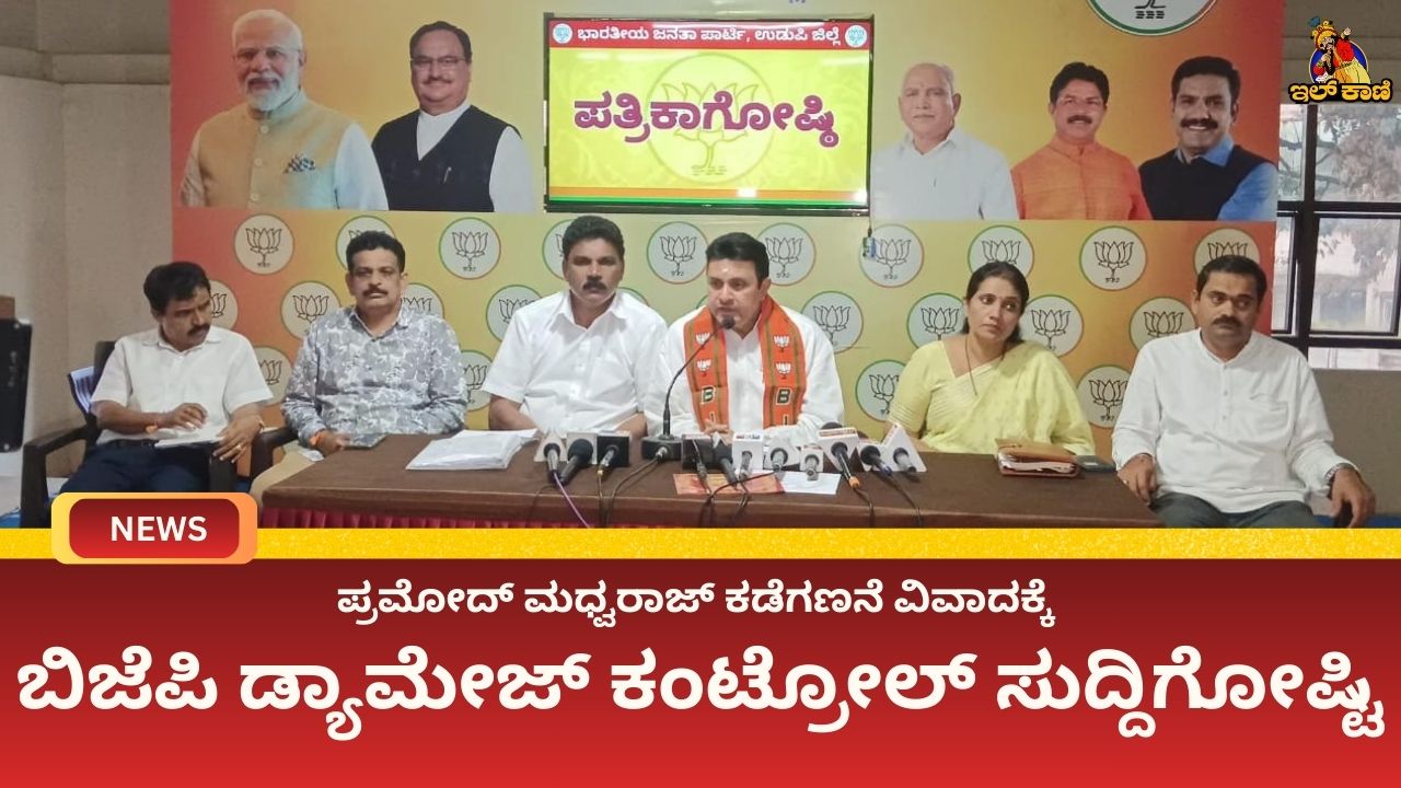 ಉಡುಪಿ: ಪ್ರಧಾನಿ ನರೇಂದ್ರ ಮೋದಿ ಅವರ ಉದ್ಘಾಟನಾ ಕಾರ್ಯಕ್ರಮದಲ್ಲಿ ಮಾಜಿ ಸಚಿವ ಹಾಗೂ ಕನಕನ ಕಿಂಡಿಗೆ ಸ್ವರ್ಣ ಕವಚ ದಾನ ಮಾಡಿದ ಪ್ರಮೋದ್ ಮಧ್ವರಾಜ್ ಅವರನ್ನು ಕಡೆಗಣಿಸಲಾಗಿದೆ ಎಂಬ ಆರೋಪದ ಹಿನ್ನೆಲೆಯಲ್ಲಿ ಜಿಲ್ಲೆಯಲ್ಲಿ ವ್ಯಾಪಕ ವಿರೋಧ ವ್ಯಕ್ತವಾಗುತ್ತಿದ್ದಂತೆ, ಬಿಜೆಪಿ ಡ್ಯಾಮೇಜ್ ಕಂಟ್ರೋಲ್ಗೆ ಮುಂದಾಗಿದೆ. ಈ ಹಿನ್ನೆಲೆಯಲ್ಲಿ ಇಂದು ಬಿಜೆಪಿ ನಾಯಕರು ಪ್ರಮೋದ್ ಮಧ್ವರಾಜ್ ಅವರೊಡನೆ ಜಂಟಿ ಸುದ್ದಿಗೋಷ್ಠಿ ನಡೆಸಿ ತನ್ನ ನಿಲುವನ್ನು ಸ್ಪಷ್ಟಪಡಿಸಿದರು.