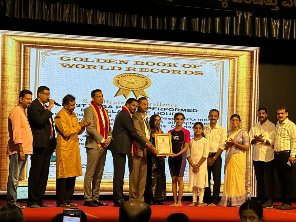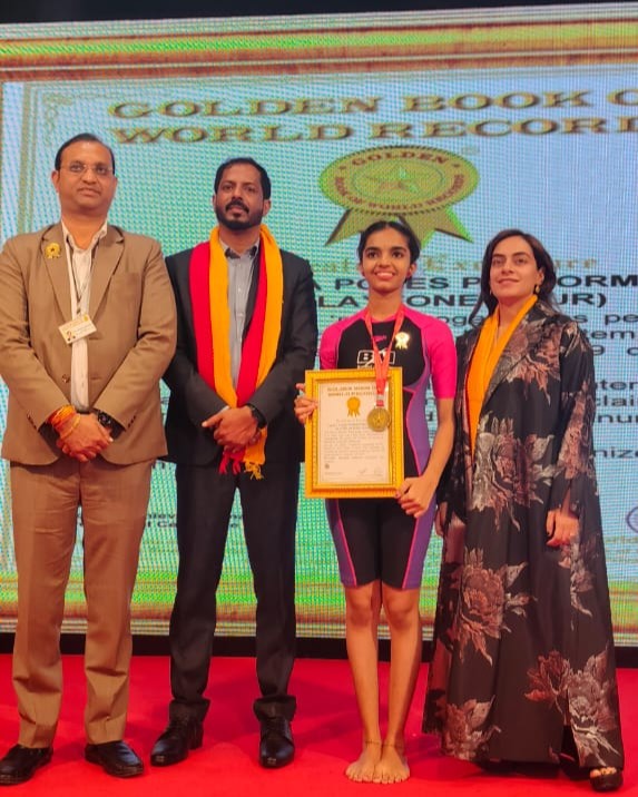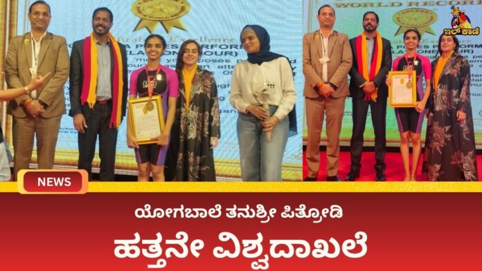 ಉಡುಪಿ : ಯೋಗಬಾಲೆ ತನುಶ್ರೀ ಪಿತ್ರೋಡಿ ಐವತ್ತು ನಿಮಿಷದಲ್ಲಿ 333 ಆಸನಗಳನ್ನು ಮಾಡುವ ಮೂಲಕ ಹತ್ತನೇ ವಿಶ್ವದಾಖಲೆ ಮಾಡಿದ್ದಾರೆ. ಬೆಹರಿನ್ ಕನ್ನಡ ಸಂಘದ ಸಭಾಂಗಣದಲ್ಲಿ ನಡೆದ ಕಾರ್ಯಕ್ರಮದಲ್ಲಿ ಗೋಲ್ಡನ್ ಬುಕ್ ಆಫ್ ರೆಕಾರ್ಡ್ ಗೆ ಸೇರ್ಪಡೆಯಾದರು.