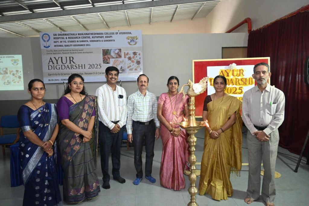 ಉಡುಪಿ : ಶ್ರೀ ಧರ್ಮಸ್ಥಳ ಮಂಜುನಾಥೇಶ್ವರ ಆಯುರ್ವೇದ ಕಾಲೇಜು, ಆಸ್ಪತ್ರೆ ಮತ್ತು ಸಂಶೋಧನಾ ಕೇಂದ್ರ, ಕುತ್ಪಾಡಿ, ಉಡುಪಿ ಇದರ ಸಂಹಿತಾ ಸಿದ್ಧಾಂತ ಹಾಗೂ ಸಂಸ್ಕೃತ ವಿಭಾಗವು ಬಿಎಎಮ್ಎಸ್ ವಿದ್ಯಾರ್ಥಿಗಳಿಗಾಗಿ ರಾಜ್ಯಮಟ್ಟದ ಮಾರ್ಗದರ್ಶಿ ಆಯುರ್ವೇದ ಸಮ್ಮೇಳನ ‘ಆಯುರ್ ದಿಗ್ದರ್ಶಿ – 2025’ ಆಯೋಜಿಸಿತ್ತು. ಕಾರ್ಯಕ್ರಮದ ಅಧ್ಯಕ್ಷತೆ ವಹಿಸಿದ್ದ ಕಾಲೇಜಿನ ಪ್ರಾಂಶುಪಾಲರಾದ ಡಾ. ಮಮತಾ ಕೆ.ವಿ.ಯವರು, ಬಿಎಎಮ್ಎಸ್ ನಂತರ ವಿದ್ಯಾರ್ಥಿಗಳಿಗಿರುವ ಅವಕಾಶಗಳನ್ನು ತಿಳಿಸಿದರು. ಎಸ್.ಡಿ.ಎಮ್. ಆಯುರ್ವೇದ ಆಸ್ಪತ್ರೆಯ ವೈದ್ಯಕೀಯ ಅಧೀಕ್ಷಕ ಡಾ. ನಾಗರಾಜ್ ಎಸ್.ಅವರು ಆಯುರ್ವೇದ ವೈದ್ಯರಲ್ಲಿರಬೇಕಾದ ಗುಣಲಕ್ಷಣಗಳ ಕುರಿತು ಮಾತನಾಡಿದರು. ಪ್ರಧಾನ ಸಂಪನ್ಮೂಲ ವ್ಯಕ್ತಿ ವಿಜಯಪುರದ ಪವಮಾನ ಆಯುರ್ವೇದ ಫಾರ್ಮಸಿಯ ಸ್ಥಾಪಕ ಡಾ.ಶ್ರೀನಿವಾಸ ಒಡೆಯರ್ ಅವರು ವೈದ್ಯಕೀಯ ವೃತ್ತಿಯಲ್ಲಿ ಆಯುರ್ವೇದ ಶಾಸ್ತçದ ಆಳವಾದ ಅಧ್ಯಯನದ ಅಗತ್ಯವನ್ನು ನೈಜ ರೋಗಿಗಳ ಉದಾಹರಣೆಗಳ ಮೂಲಕ ತಿಳಿಸಿದರು.