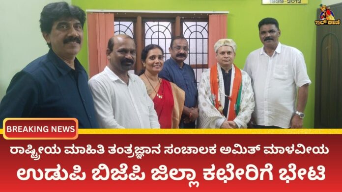 ಉಡುಪಿ : ಬಿಜೆಪಿ ರಾಷ್ಟ್ರೀಯ ಮಾಹಿತಿ ತಂತ್ರಜ್ಞಾನ ಸಂಚಾಲಕ ಹಾಗೂ ಪ.ಬಂಗಾಲ ರಾಜ್ಯದ ಸಹ ಉಸ್ತುವಾರಿ ಅಮಿತ್ ಮಾಳವೀಯ ಅವರು ಬಿಜೆಪಿ ಉಡುಪಿ ಜಿಲ್ಲಾ ಕಛೇರಿಗೆ ಭೇಟಿ ನೀಡಿದರು. ಈ ಸಂದರ್ಭದಲ್ಲಿ ಬಿಜೆಪಿ ಉಡುಪಿ ಜಿಲ್ಲಾಧ್ಯಕ್ಷ ಕುತ್ಯಾರು ನವೀನ್ ಶೆಟ್ಟಿ ಅವರು ಅಮಿತ್ ಮಾಳವೀಯ ಅವರನ್ನು ಶಾಲು ಹೊದಿಸಿ ಸನ್ಮಾನಿಸಿದರು.